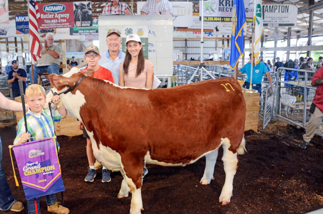 GRAND CHAMPION: Briar Kennedy | Bid: $8/lb | Weight: 1,350 lbs | Buyer: Amerikohl Mining, Inc.; RESERVE CHAMPION: Eli Ambrose | Bid: $8/lb | Weight: 1,415 lbs | Buyer: Oesterling’s Feed