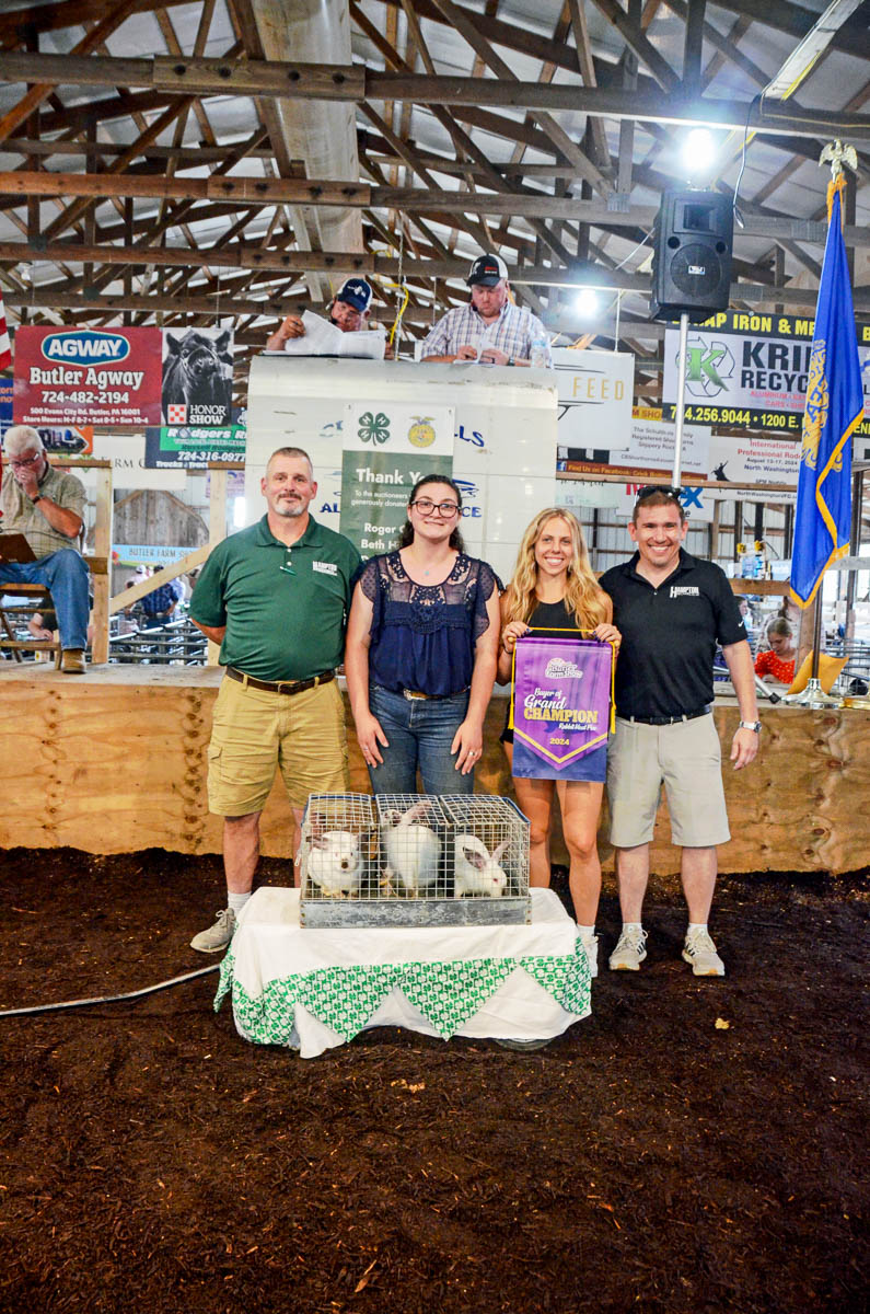 GRAND CHAMPION: Adalynn Guiher | Bid: $17/lb | Weight: 138 lbs | Buyer: Butler Agway; RESERVE CHAMPION: Melissa Drake | Bid: $50/lb | Weight: 140 lbs | Buyer: Amerikohl Mining, Inc.