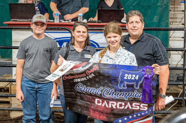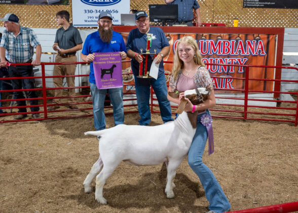 GRAND CHAMPION: Sarah Baer | Bid: $24/lb | Weight: 144 lb | Buyer: Sarchione Chevrolet; RESERVE CHAMPION: ELIZABETH PIROGOWICZ | Bid: $24/lb | Weight: 148 lbs | Buyer: General Concrete and Construction; GRAND CHAMPION CARCASS: Alaina Grubb | Bid: $20/lb | Weight: 86 lbs | Buyer: Fresh Off the Farm LLC; RESERVE CHAMPION CARCASS: ALLIE BOYD | Bid: $15/lb | Weight: 101 lbs | Buyer: The Williams Company