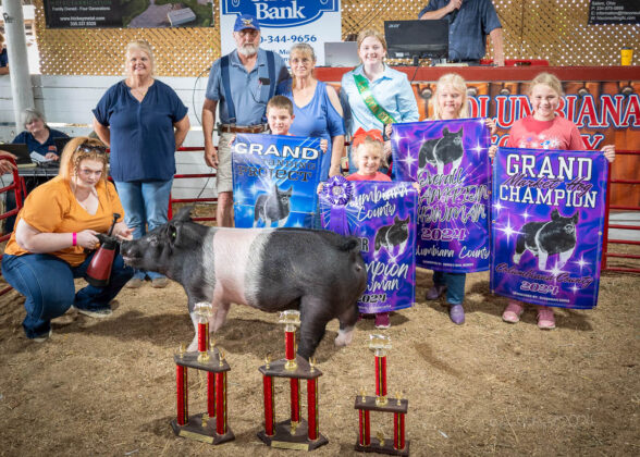 TOTAL POUNDS GRAND CHAMPION: Kylie Holmes | Bid: $9,000/ basket | Buyer: Sandy Beaver Insurance & Julie Herron; GRAND CHAMPION: Lucas Zehentbauer | Bid: $4,500/basket | Buyer: T Morris Trucking | RESERVE CHAMPION: Carli Binckley | Bid: $3,500/basket | Buyer: Hickey Metal Fabrication