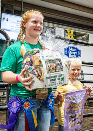 GRAND CHAMPION: Kamryn Kiko | Bid: $20/lb | Weight: 1,378 lbs | Buyer: Justin & Amanda Medure; RESERVE CHAMPION: Callie Koons | Bid: $14/lb |Weight: 1,434 lbs | Buyer: Hickey Metal Fabrication; GRAND CHAMPION CARCASS: Izzy Blazer | Bid: $16/lb | Weight: 1,240 lbs | Buyer: Leonard Truck & Trailer Inc.; RESERVE CHAMPION CARCASS: Tana Reed | Bid: $13/lb | Weight: 1,210 lbs | Buyer: Envelope One