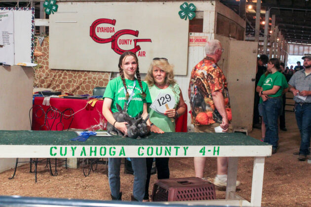 GRAND CHAMPION: Sodapop Kiser | Bid: $510 | Weight: 53 lbs (pen of 2) | Buyer: Cuyahoga County Farm Bureau; RESERVE CHAMPION: Hannah Eldridge | Bid: $310 | Weight: 47 lbs (pen of 2) | Buyer: Greystone Veterinary Hospital + Urgent Care, Lindsay Kostal, DVM