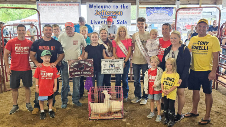 GRAND CHAMPION Kendall Barker | Bid: $4.25/lb | Weight: 660 lbs |Buyer: DeNoon Lumber; RESERVE CHAMPION: Emma Morrison | Bid: $4/lb | Weight: 525 lbs |Buyer: Jefferson Landmark