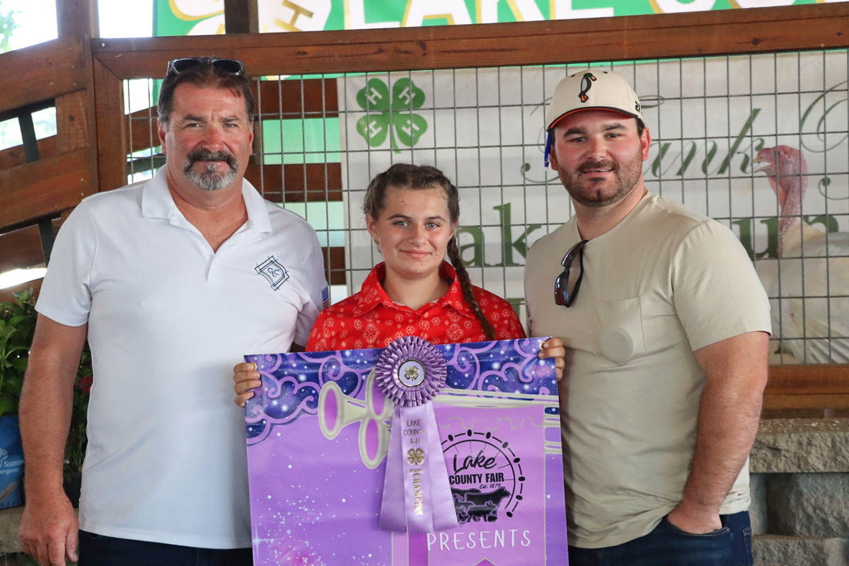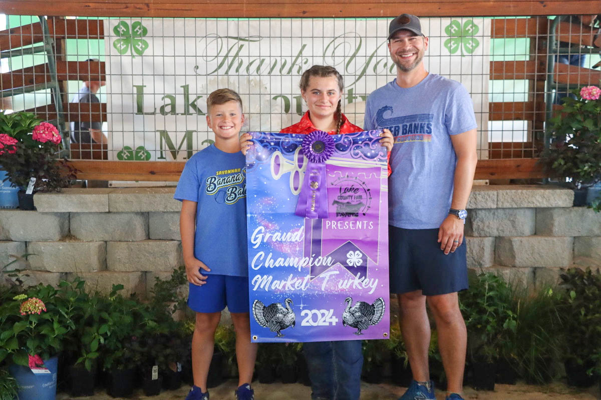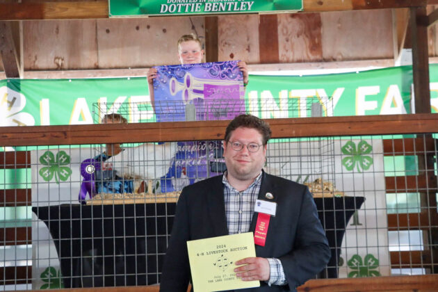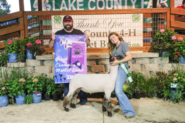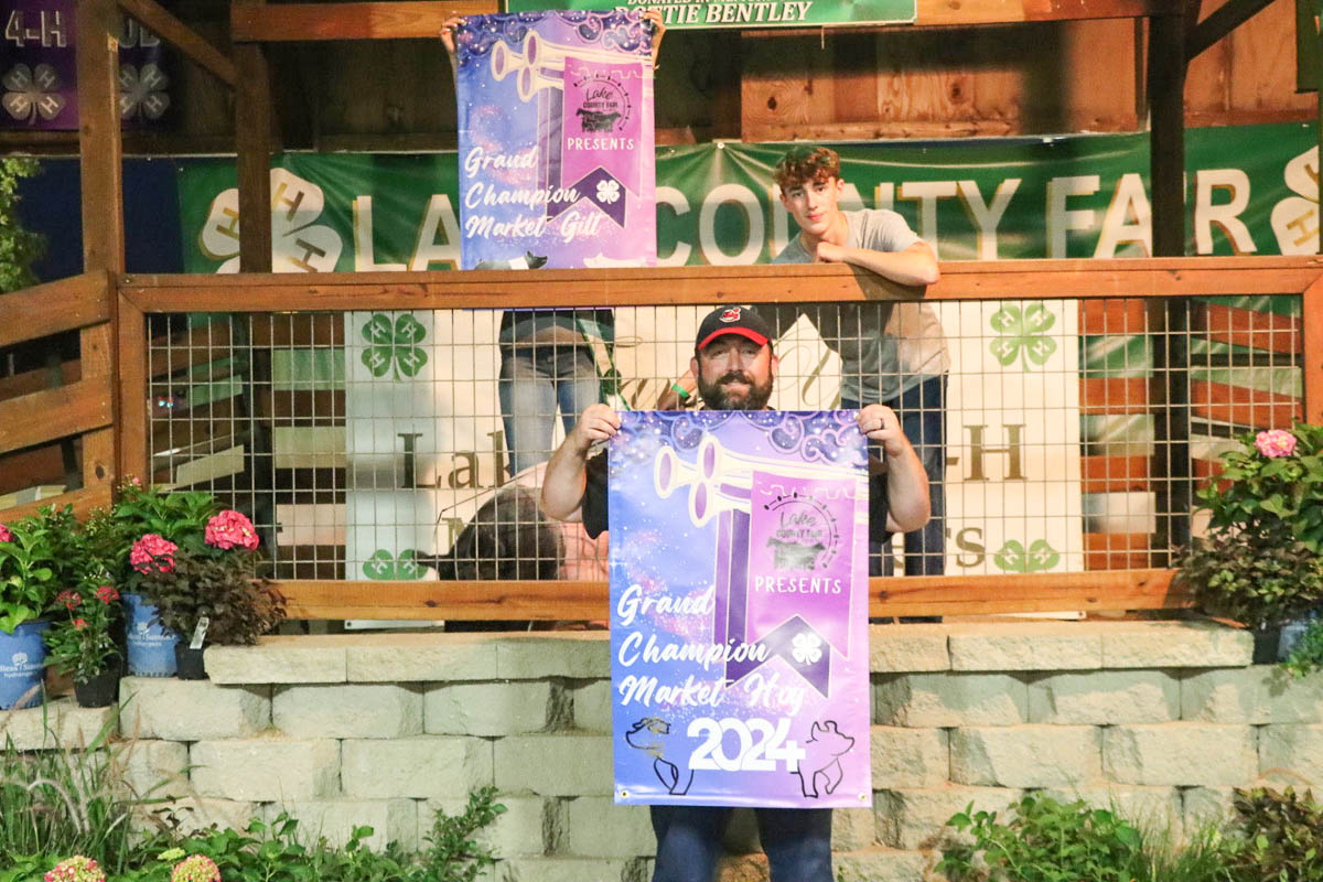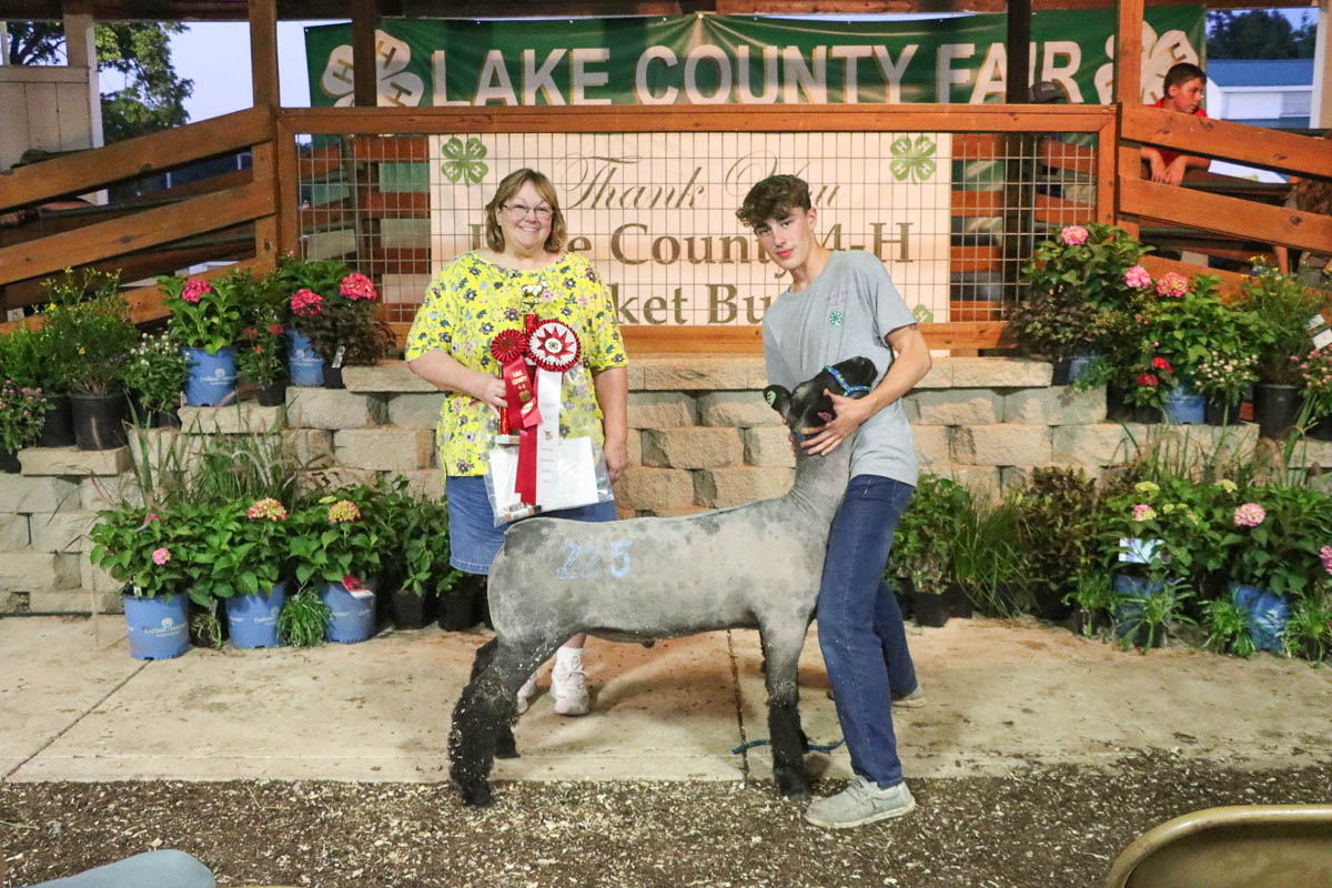 GRAND CHAMPION: Mason VanPelt | Bid: $52.50/lb | Weight: 17.30 lbs | Buyer: Morris Beverage II; RESERVE CHAMPION: Marissa Muntain | Bid: $35/lb | Weight: 18.45lb | Buyer: Lake County Coroner