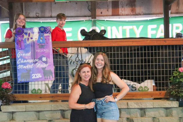 GRAND BEEF PROJECT: Michael McDonald Bid: $6/lb | Weight: 1,342 lbs | Buyer: Madison Veterinary Hospital; GRAND CHAMPION HEIFER: Aiden Milo | Bid: $8/lb | Weight: 1,335 lbs | Buyer: JAB Supply; RESERVE CHAMPION HEIFER: Sarah Dixon | Bid: $5/lb | Weight: 1,348 lbs | Buyer: Kirtland Veterinary Hospital
