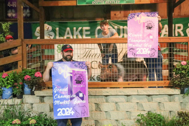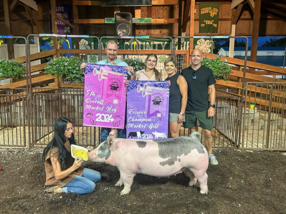 GRAND CHAMPION HOG/GRAND CHAMPION GILT: Alex Bowman | Bid: $6/lb | Weight: 285 lbs | Buyer: Morris Beverage III; RESERVE CHAMPION HOG/GRAND CHAMPION BARROW: Alex Bowman | Bid: $10/lb | Weight: 270 lbs | Buyer: Morris Beverage III; RESERVE CHAMPION GILT: Alivia Somrak | Bid: $10.50/lb | Weight: 258 lbs | Buyer: Marut and Sons; RESERVE CHAMPION BARROW: Hope Lassnick | Bid: $50/lb | Weight: 252 lbs | Buyer: Great Lakes Crushing LTD;