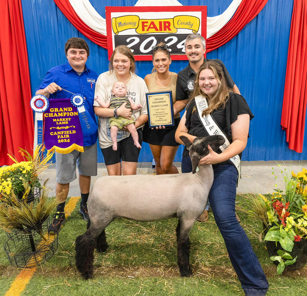 GRAND CHAMPION: Lacie Greier | Bid: $25/lb | Weight: 137 lbs | Buyer: Pigeon Family Farm; RESERVE CHAMPION: Zayden Wooten | Bid: $20/lb | Weight: 130 lbs | Buyer: The Handyman; GRAND CHAMPION CARCASS: Brooklyn Stoufer | Bid: $10/lb | Weight: 129 lbs | Buyer: The Handyman; RESERVE CHAMPION CARCASS: Zachary Reel | Bid: $14/lb | Weight: 135 lbs | Buyer: Treasured Moments Bridal