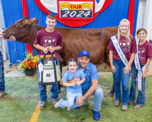 GRAND CHAMPION: Ava Timko | Bid: $6/lb | Weight: 618 lbs | Buyer: Top Shelf Genetics; RESERVE CHAMPION: Kenzie Wooten | Bid: $5/lb | Weight: 560 lbs | Buyer: The Handyman