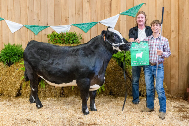 GRAND CHAMPION: Silas Mayne | Bid: $5/lb | Weight: 1,293 lbs | Buyer: Howard and Son Meat Packing & DJ’s Smokehouse; RESERVE CHAMPION: Addison Olson | Bid: $5/lb | Weight: 1,130 lbs | Buyer: Barbaur Beef