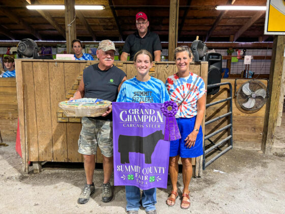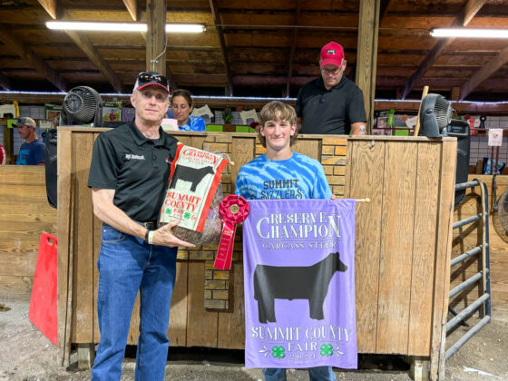 GRAND CHAMPION MARKET STEER: Hailey Young | Bid: $15/lb | Weight: 1,205 lbs | Buyer: Ron Marhofer Auto Family; RESERVE CHAMPION MARKET STEER: Kaydince Zentiska | Bid: $8/lb | Weight: 1,370 lbs | Buyer: Leppo Rents; GRAND CHAMPION CARCASS STEER: Alaina Young |Bid: $6/lb |Weight: 846 lbs | Buyer: Ron Marhofer Auto Family | RESERVE CHAMPION CARCASS STEER: Josh Young | Bid: $6/lb | Weight: 862 lbs | Buyer: Leppo Rents