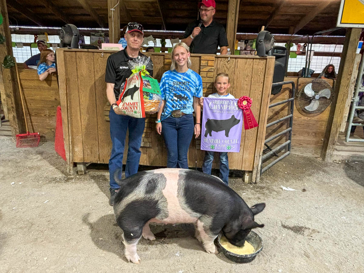 GRAND CHAMPION MARKET HOG: Lydia Abbuhl | Bid: $30/lb | Weight: 280 lbs | Buyer: Serpentini Chevy Tallmadge; RESERVE CHAMPION MARKET HOG: Lydia Abbuhl | Bid: $7.50/lb | Weight: 258 lbs | Buyer: Leppo Rents; GRAND CHAMPION CARCASS HOG: Josey Loudin | Bid: $12/lb | Weight: 172 lbs | Buyer: Ron Marhofer Auto Family; RESERVE CHAMPION CARCASS HOG: Emily Young | Bid: $9/lb | Weight: 156 lbs | Buyer: Polen Meats