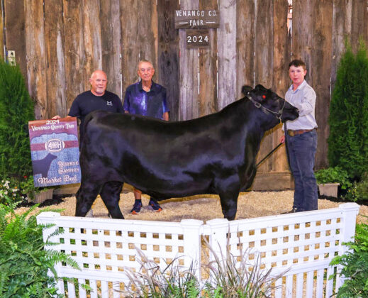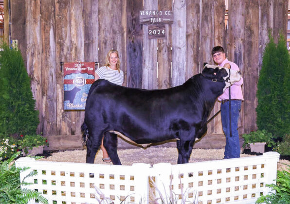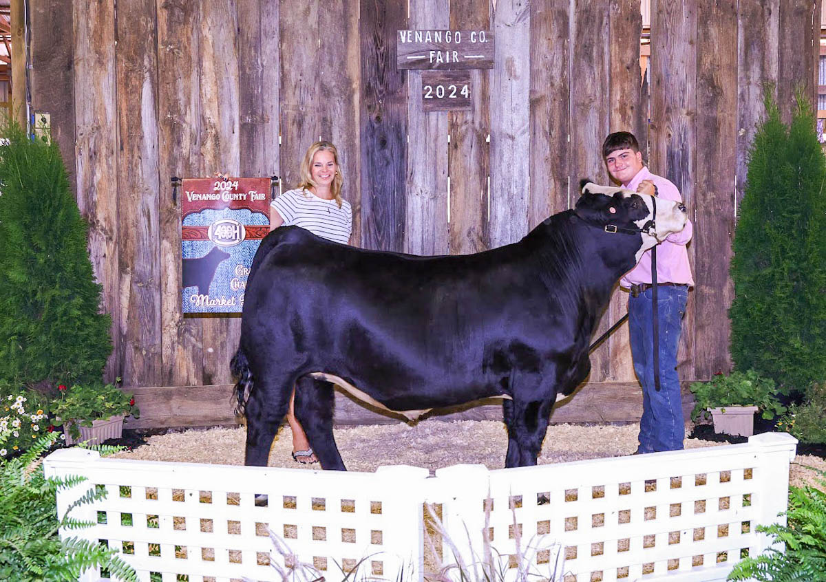 GRAND CHAMPION: Karter Hoffman | Bid: $6/lb | Weight 1,266 lbs Buyer: Village Auto; RESERVE CHAMPION: Kord Stewart | Bid: $5.60/lb | Weight: 1,281 lbs | Buyer: Allegheny Grille