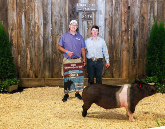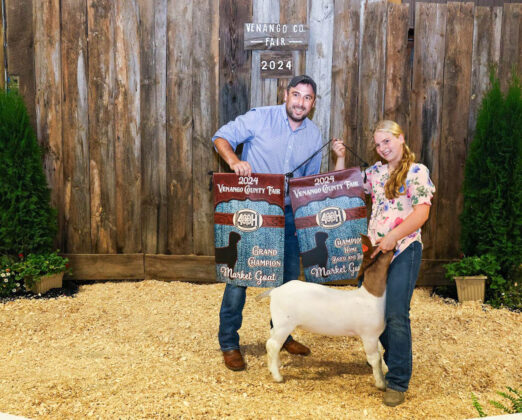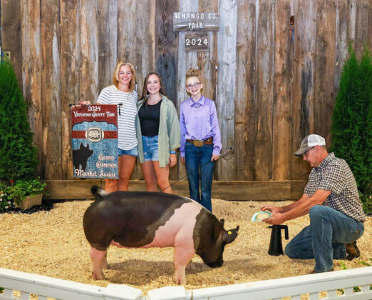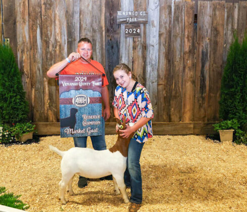 GRAND CHAMPION: Maria Schwab | Bid: $8.25/lb | Weight: 85 lbs | Buyer: Commissioner Albert Chip Abramovic; RESERVE CHAMPION: Kenlee Master | Bid: $9/lb | Weight: 87 lbs | Buyer: Bill’s Service