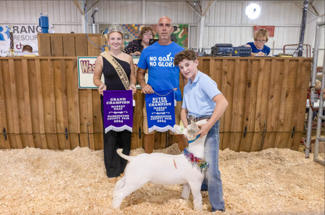 GRAND CHAMPION: Carter Briggs | Bid: $70/lb | Weight: 76 lbs | Buyer: Rich Caruso, Meadow Lands; RESERVE CHAMPION: Parker Gardner | Bid: $36/lb | Weight: 100 lbs | Buyer: Rich Caruso, Meadow Lands