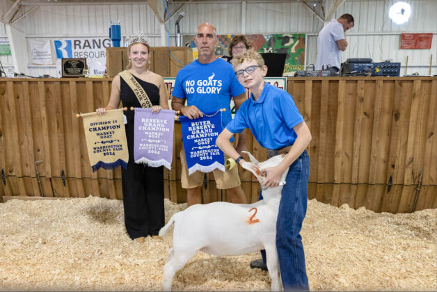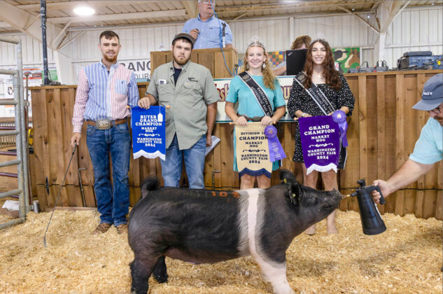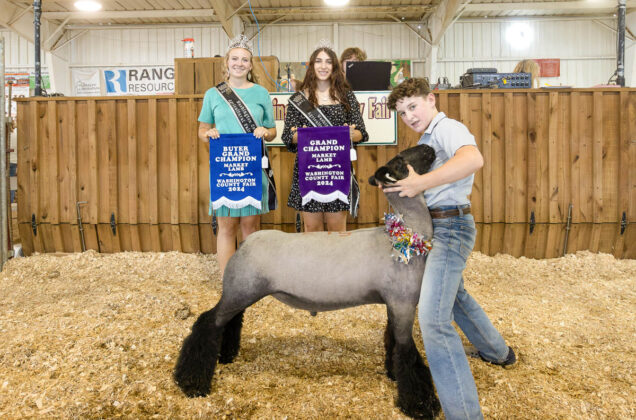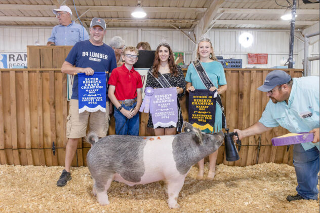 GRAND CHAMPION: Kalvin Hrutkay | Bid: $22/lb | Weight: 257 lbs | Buyer: Brandon Laird, Laird’s Trucking; RESERVE CHAMPION: Parker Gardner | Bid: $15/lb | Weight: 271 lbs | Buyer: Matt Devore, 84 Lumber