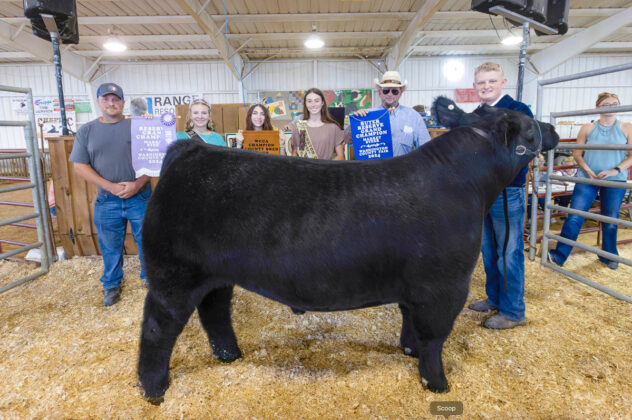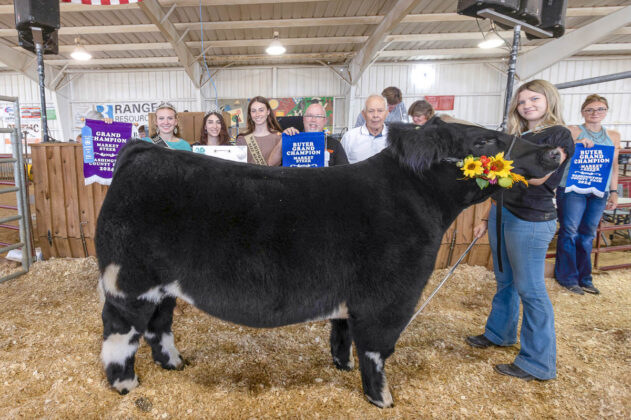 GRAND CHAMPION: Rudy Perkins | Bid: $9/lb | Weight: 1,388 lbs | Buyer: Cheplic Packing, Inc. | RESERVE CHAMPION: William Beinlich | Bid: $6.50/lb | Weight: 1,345 lbs | Buyer: Killion & Sons Well Service