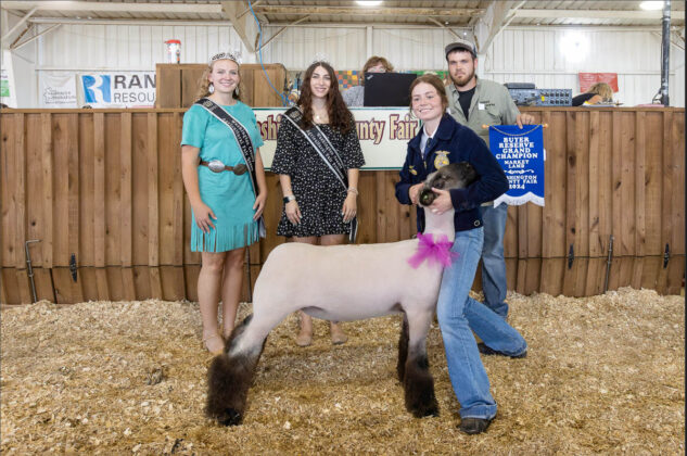 GRAND CHAMPION: Carter Briggs | Bid: $160/lb | Weight: 134 lbs | Buyer: Alumicore; RESERVE CHAMPION: Alexis Miles | Bid: $20/lb | Weight: 146 lbs | Buyer: Brandon Laird, Laird’s Trucking
