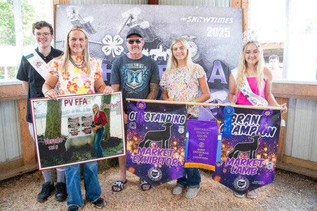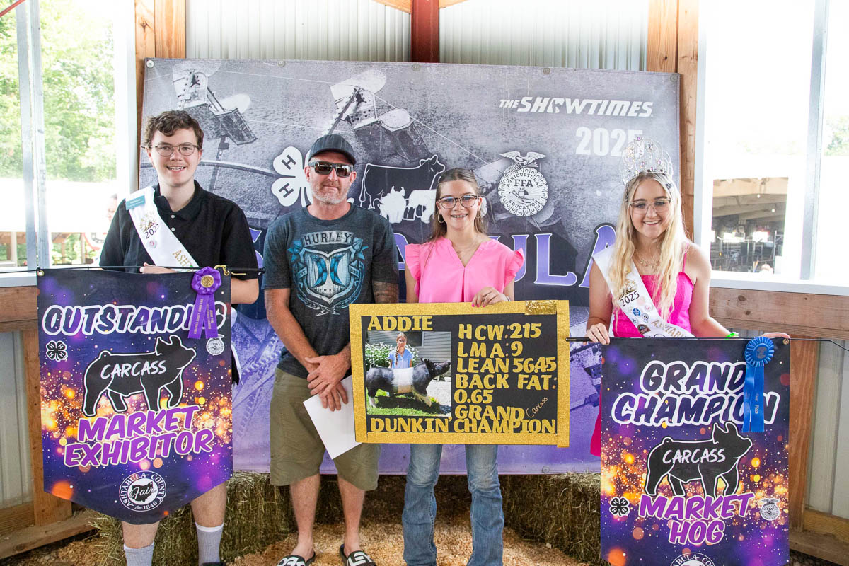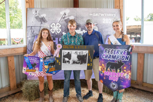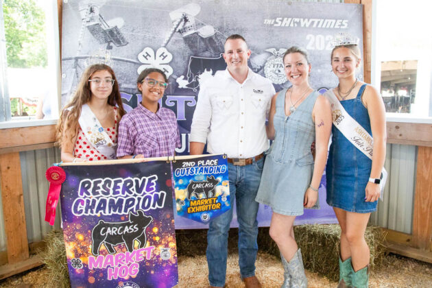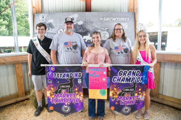 GRAND CHAMPION: Raylyn Ballentine | Bid: $80/lb | Weight: 138 lbs | Buyer: Ballentine Excavating; RESERVE CHAMPION: Addison Merinar | Bid: $15/lb | Weight: 133 lbs | Buyer: Hollis LLC