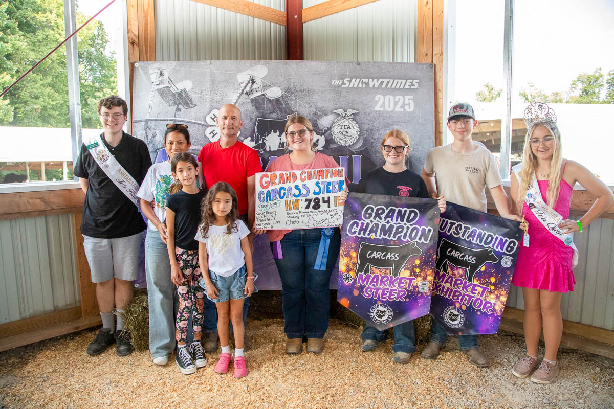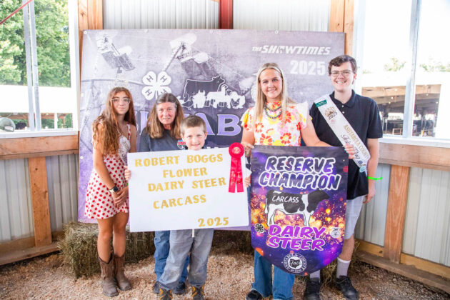 GRAND CHAMPION: Jaxson Graves | Bid: $3.30/lb | Weight: 834 lbs | Buyer: Andover Diner; RESERVE CHAMPION: Robert Boggs | Bid: $4.80/lb | Weight: 908 lbs | Buyer: Sue Horn