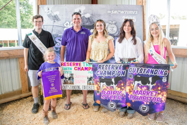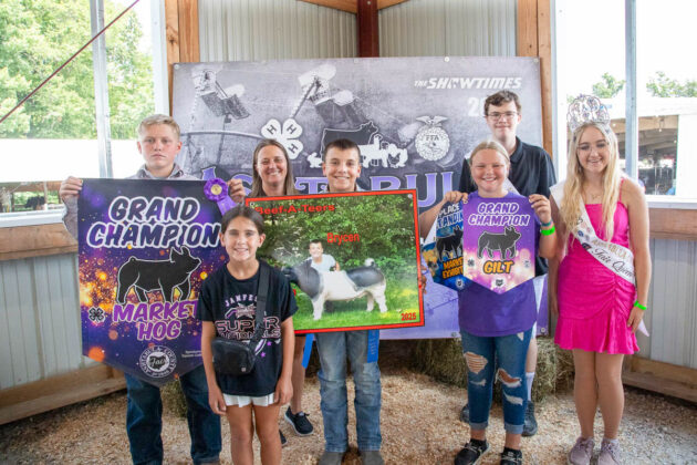 GRAND CHAMPION: George Dzura | Bid: $5.75/lb | Weight: 1,370 lbs | Buyer: The Dark Room Brewery; RESERVE CHAMPION: Aubrey Bradbury | Bid: $3.60/lbs | Weight: 1,430 lbs | Buyer: Middlefield Banking