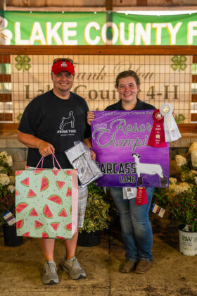 GRAND CHAMPION: Bobby Wyant | Bid: $20/lb | Weight: 147 lbs | Buyer: Morris Beverage III; RESERVE CHAMPION: Heidi Wyant | Bid: $13/lb | Weight: 130 lbs | Buyer: Trinity Veterinary Hospital GRAND LAMB CARCASS: Seamus Bly | Bid: $9/lb | Weight: 62 lbs | Buyer: Justin Miller and Breighanna Hostetler; RESERVE CHAMPION CARCASS: Kylie Sugalski | Bid: $11/lb | Weight: 72 lbs Buyer: Prime Time Show Stock; GRAND LAMB PROJECT: Josie Goldy | Bid: $15/lb | Weight: 119 lbs Buyer: Scott Mihalic Auctioneers; RESERVE LAMB PROJECT: Alex Bowman | Bid: $23/lb | Weight: 143 lbs | Buyer: North Ridge Marathon