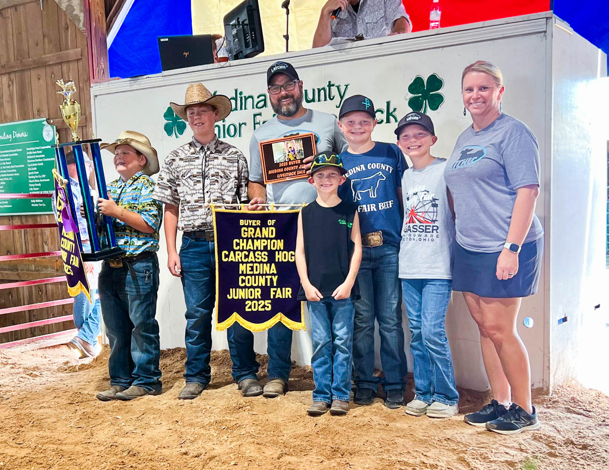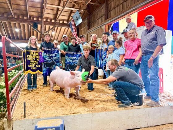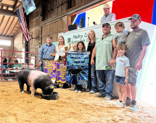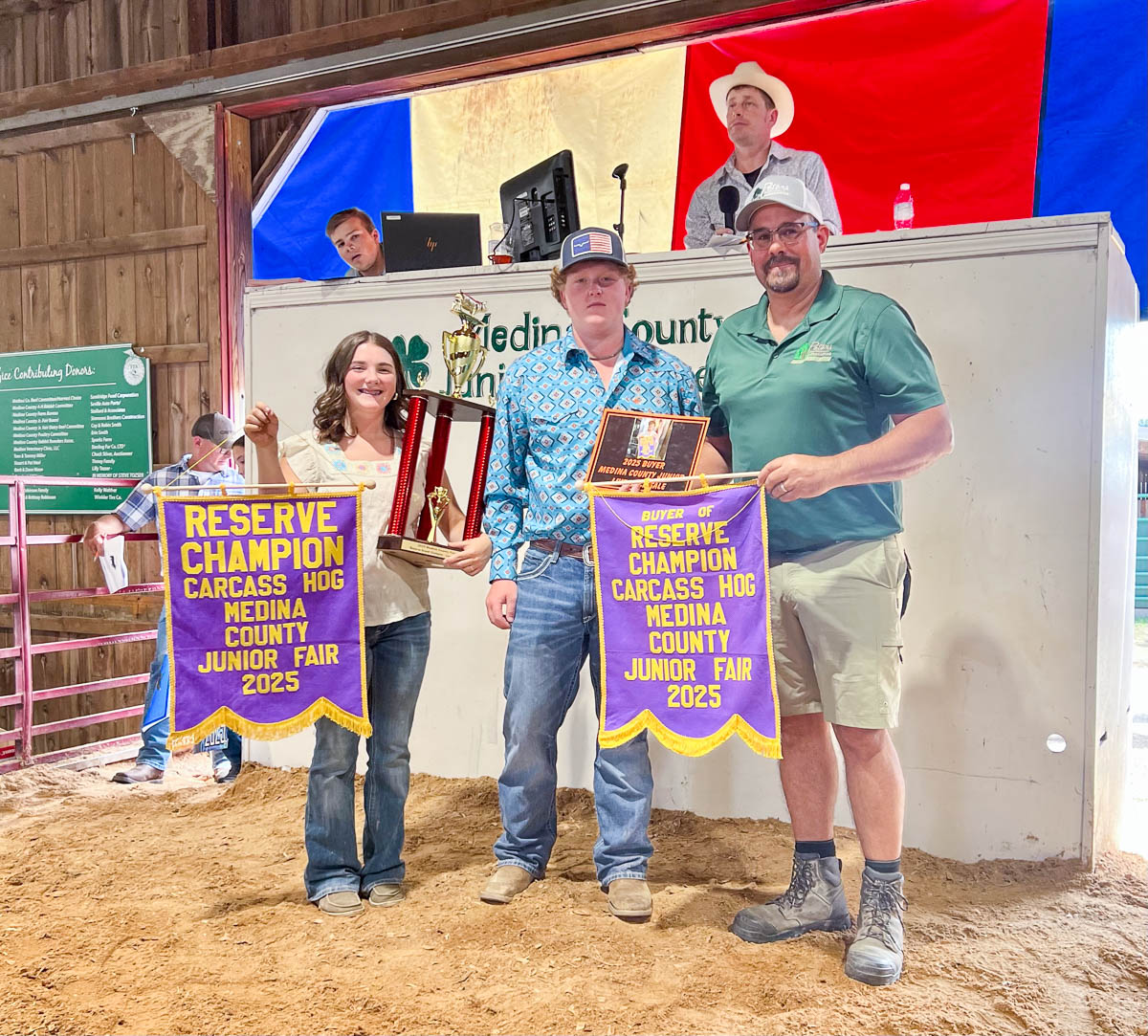 GRAND CHAMPION SWINE: Parker Broadsword | Weight: 273 lbs | Total bid: $14,000 | Buyers: Ag Design, Boyert Greenhouse & Farm, Davis Tree Farm, JTS Landscaping, Medina Turf Farm, Peters Professional Landscaping, Rick & Carol Robbs, Ryan’s Signature Landscaping, Boyert Insurance Group, #1 Landscaping, Ken Thiergartner, Split Rail Nursery, Jim Schill and Down to Earth; RESERVE CHAMPION SWINE: Caroline Maat | Weight: 265 lbs | Total bid: $4,000 | Buyer: Bauman & Sons Oil LLC; RESERVE CHAMPION HOMEGROWN SWINE: Gerry Smith III | Weight: 245 lbs | Total bid: $3,000 | Buyer: Bauman & Sons Oil LLC; GRAND CHAMPION CARCASS SWINE: Barrett Whitney | Weight: 130 lbs | Total bid $2,000 | Buyer: Latchic Cattle Company; RESERVE CHAMPION MARKET SWINE: Jake Maat | Weight: 137 lbs | Total bid: $2,250 | Buyer: Peters Professional Landscaping