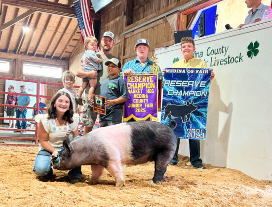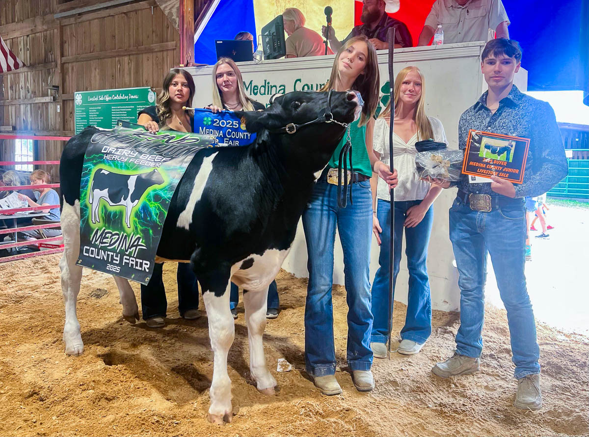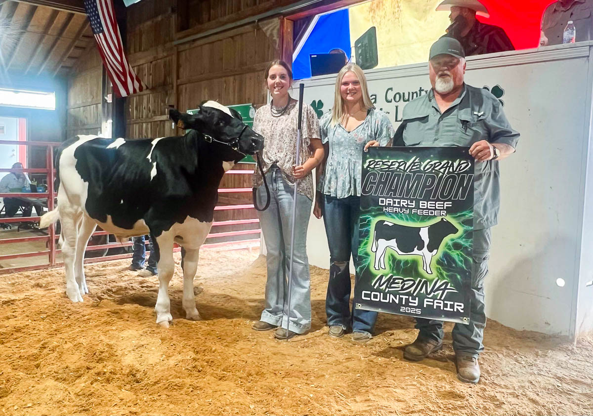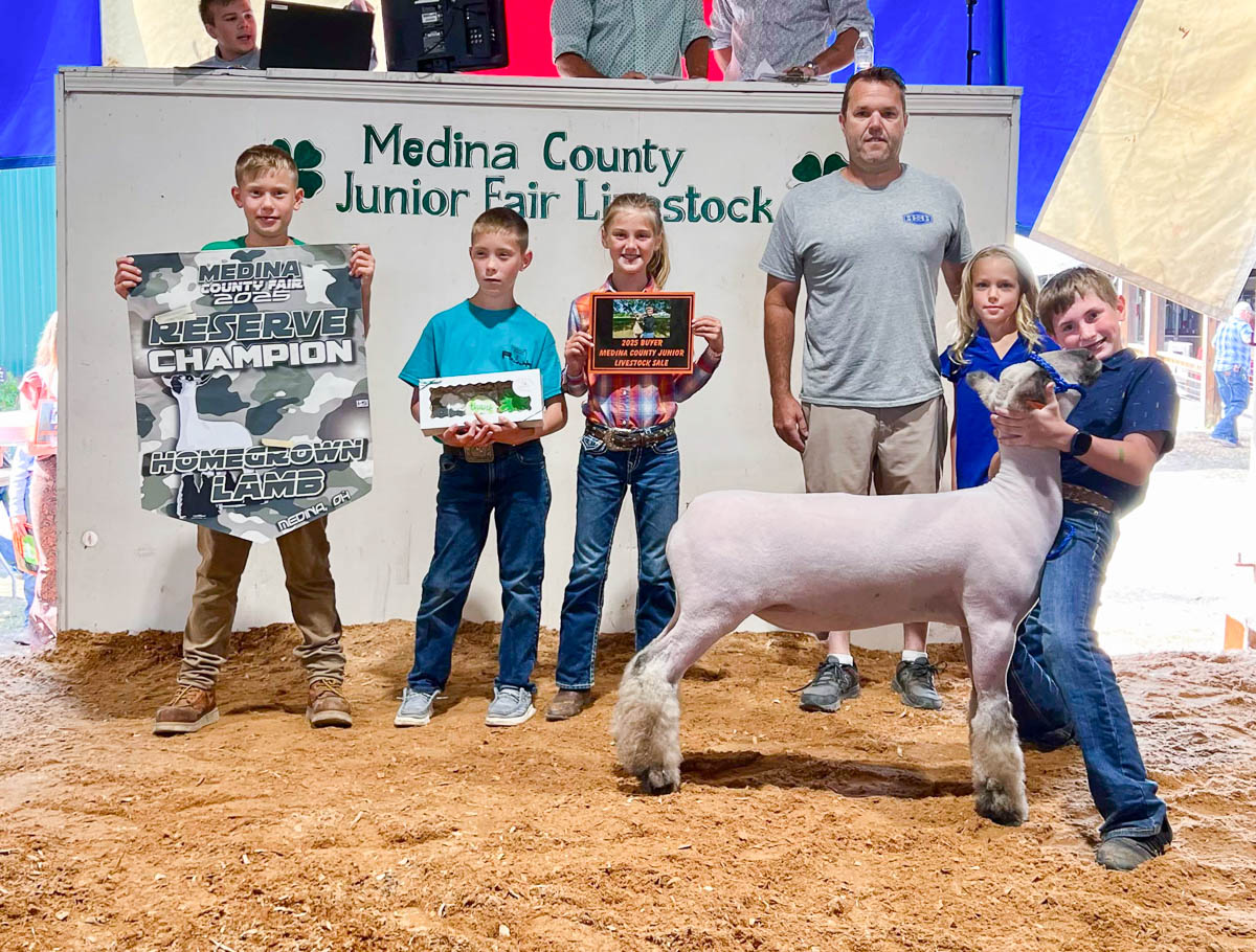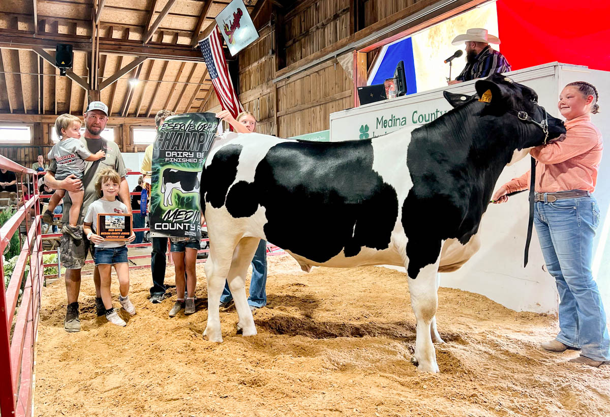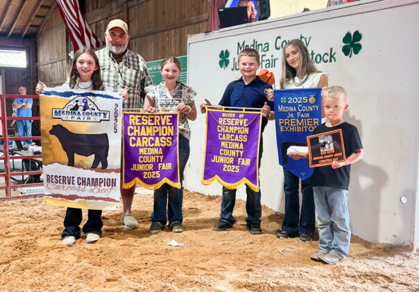 GRAND CHAMPION MARKET BEEF: Kennedy Hagenbaugh | Weight: 1,430 lbs | Total bid $7,500 | Buyer: C&S Lawn Service and Landscape; RESERVE CHAMPION MARKET BEEF: Garrett Reusch | Weight 1,425 lbs | Total bid: $6,500| Buyer: Reusch Diesel LLC, Schaeffer’s Oil and Josh Morlock; GRAND CHAMPION COUNTY BORN BEEF: Garrett Reusch | Weight: 1,545 lbs | Total bid $6,000 | Buyer: Forever Fence & Rai; RESERVE CHAMPION COUNTY BORN BEEF: Josie Ruffing | Weight: 1,280 lbs | Total bid: $5,000 | Buyer: Medina Turf Farms; GRAND CHAMPION CARCASS BEEF: Luke Farnsworth | Weight: 836 lbs | Total bid $6,000 | Buyer: Shaw Trucking & Excavating; RESERVE CHAMPION CARCASS BEEF: Bailee Robinson | Weight: 779 lbs | Total bid: $6,750 | Buyer: Albrecht Trucking
