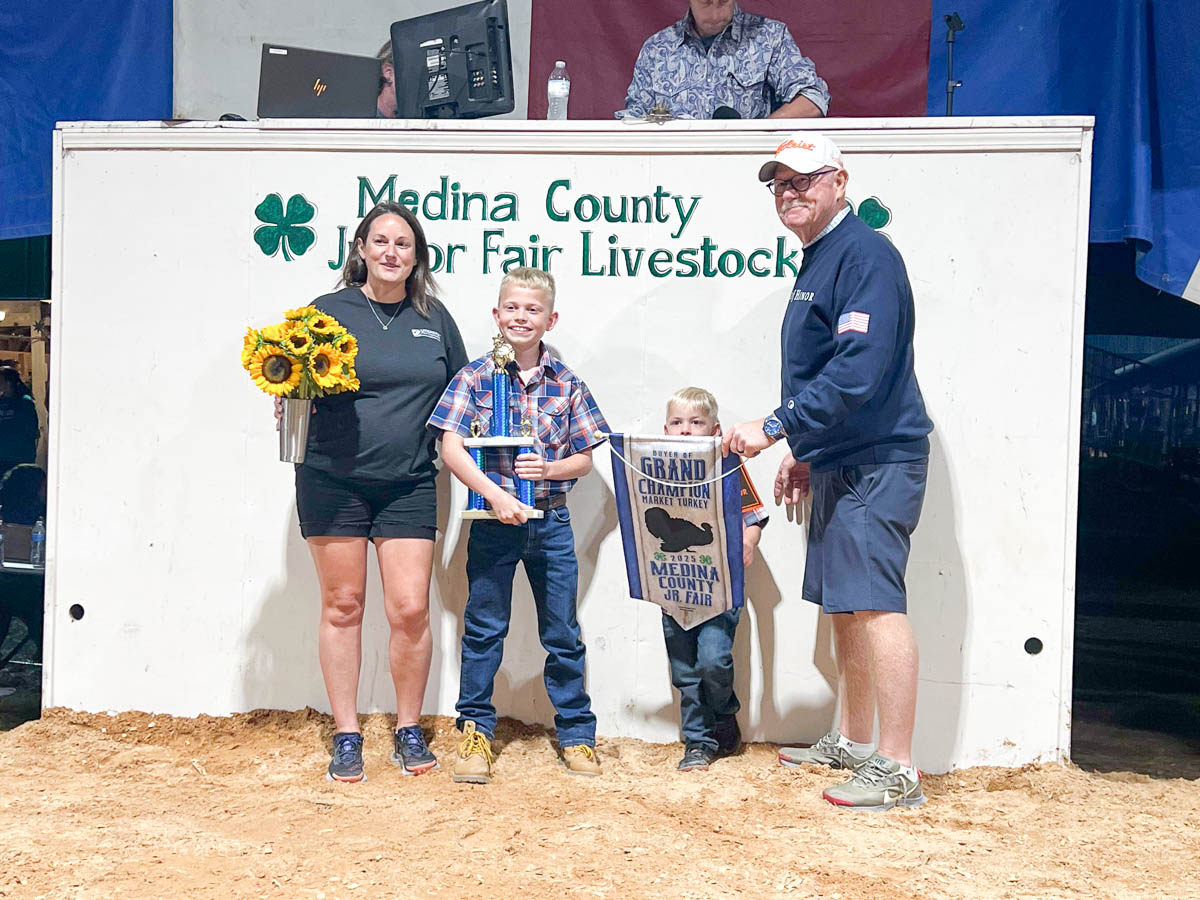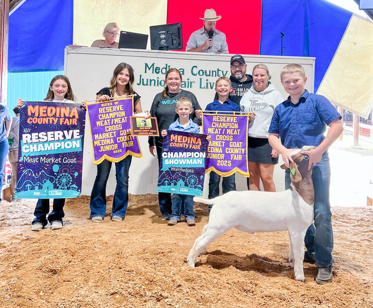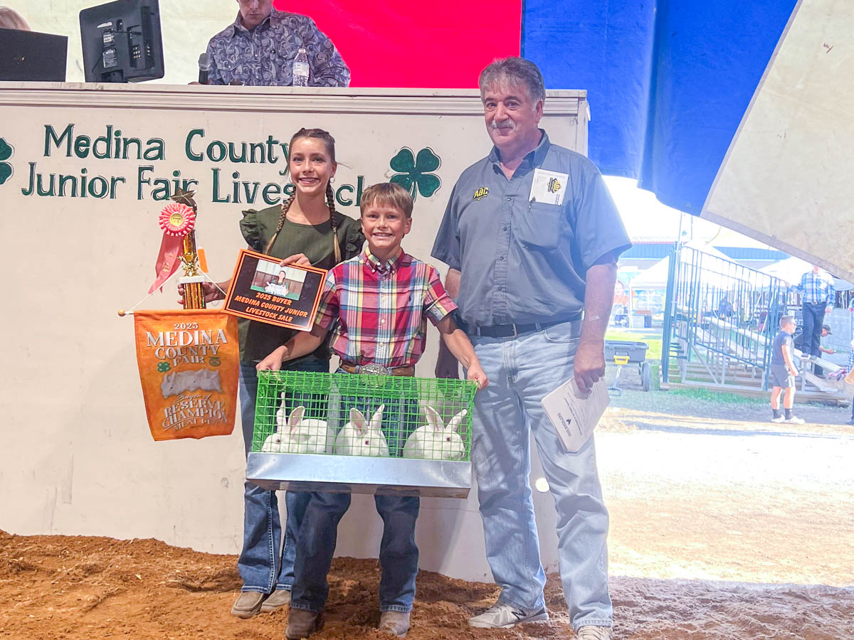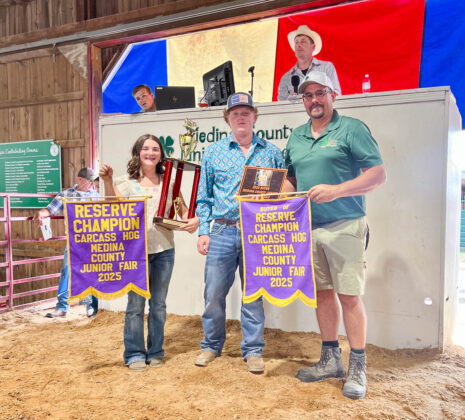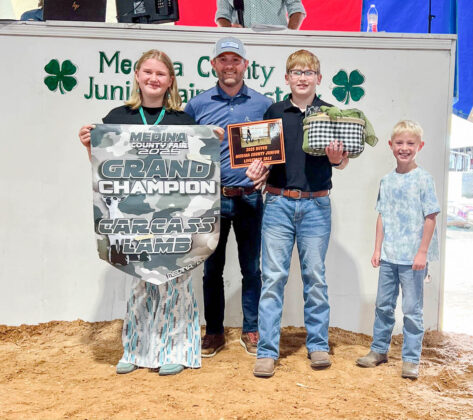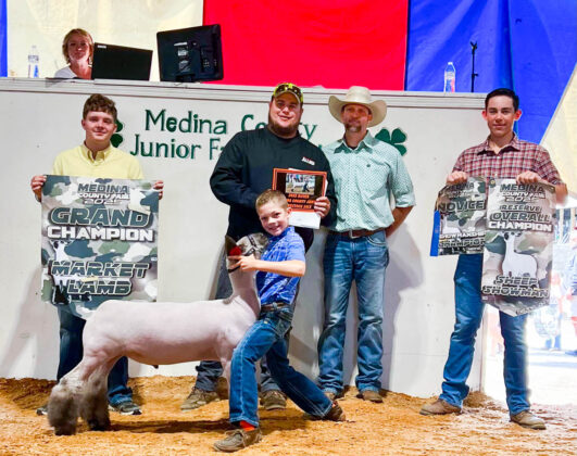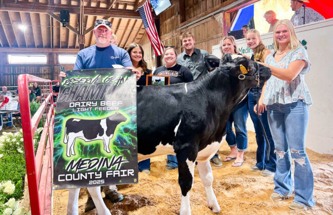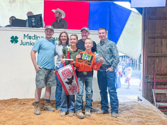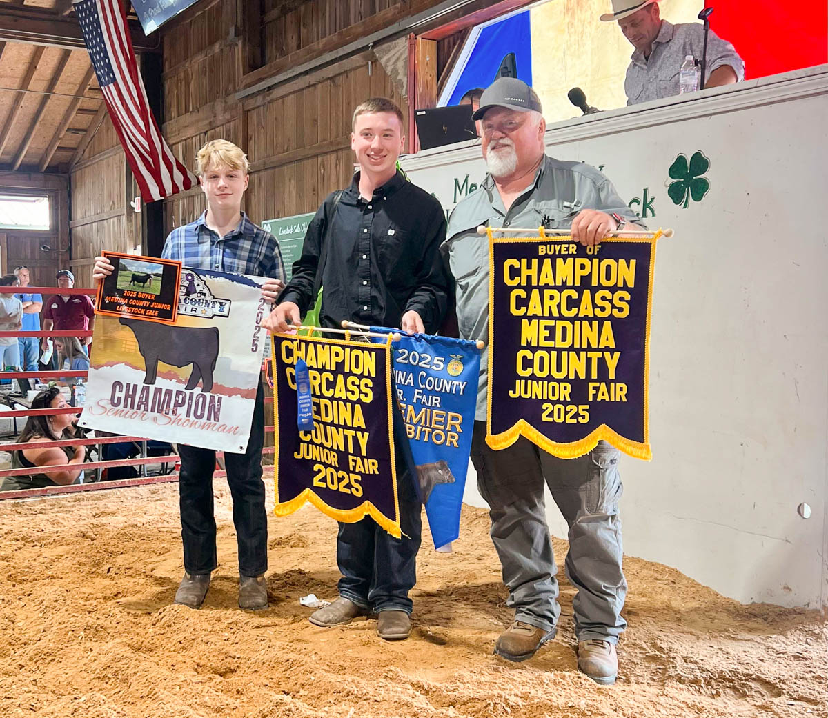 GRAND CHAMPION MARKET BEEF: Kennedy Hagenbaugh | Weight: 1,430 lbs | Total bid $7,500 | Buyer: C&S Lawn Service and Landscape; RESERVE CHAMPION MARKET BEEF: Garrett Reusch | Weight 1,425 lbs | Total bid: $6,500| Buyer: Reusch Diesel LLC, Schaeffer’s Oil and Josh Morlock; GRAND CHAMPION COUNTY BORN BEEF: Garrett Reusch | Weight: 1,545 lbs | Total bid $6,000 | Buyer: Forever Fence & Rai; RESERVE CHAMPION COUNTY BORN BEEF: Josie Ruffing | Weight: 1,280 lbs | Total bid: $5,000 | Buyer: Medina Turf Farms; GRAND CHAMPION CARCASS BEEF: Luke Farnsworth | Weight: 836 lbs | Total bid $6,000 | Buyer: Shaw Trucking & Excavating; RESERVE CHAMPION CARCASS BEEF: Bailee Robinson | Weight: 779 lbs | Total bid: $6,750 | Buyer: Albrecht Trucking