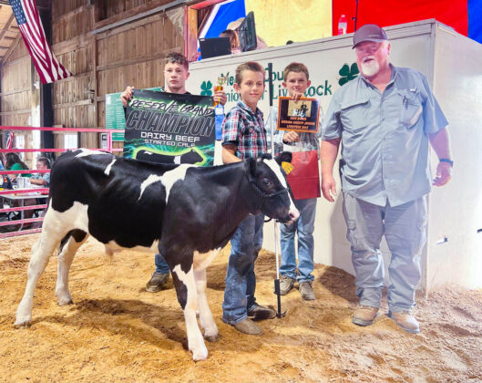 RESERVE CHAMPION DAIRY BEEF STARTER: James Gray | Weight: 260 lbs | Total bid: $ 1,800 | Buyer: Shaw Trucking & Excavating; RESERVE CHAMPION DAIRY BEEF LIGHT FEEDER: Emma Garrison | Weight: 550 lbs | Total bid: $2,300 | Buyer: AJR Letner Farms; GRAND CHAMPION DAIRY BEEF HEAVY FEEDERS: Eleanor Marshall | Weight: 675 lbs | Total bid $2,700 | Buyer: Marshall Livestock; RESERVE CHAMPION DAIRY BEEF HEAVY FEEDERS: Sachara Garrison | Weight: 730 lbs | Total bid: $2,300 | Buyer: Shaw Trucking & Excavating; GRAND CHAMPION DAIRY BEEF FINISHED STEER: Ethan Marshall-Wack | Weight: 1,460 lbs | Total bid: $3,500 | Buyer: Bauman & Sons Oil, LLC; RESERVE CHAMPION DAIRY BEEF FINISHED STEER: Adeline Burchfield | Weight: 1,565 lbs | Total bid: $5,600 | Buyer: Bauman & Sons Oil, LLC