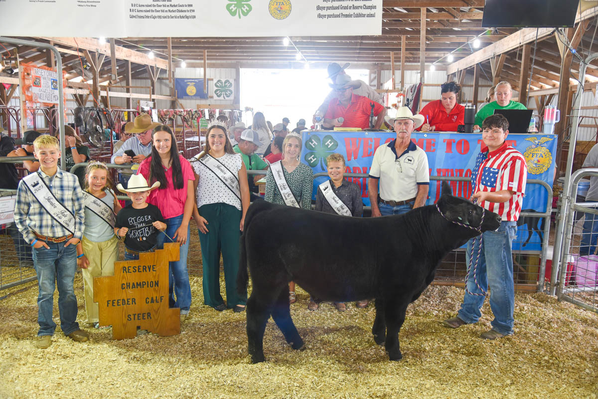 GRAND CHAMPION: Hannah DeVolld | Bid: $17,000 | Weight: 1,345 lbs | Buyer: Caldwell Eagles #2952; RESERVE CHAMPION: Lane Robinson | Bid: $13,500 | Weight: 1,367 lbs | Buyer: Jones Feed