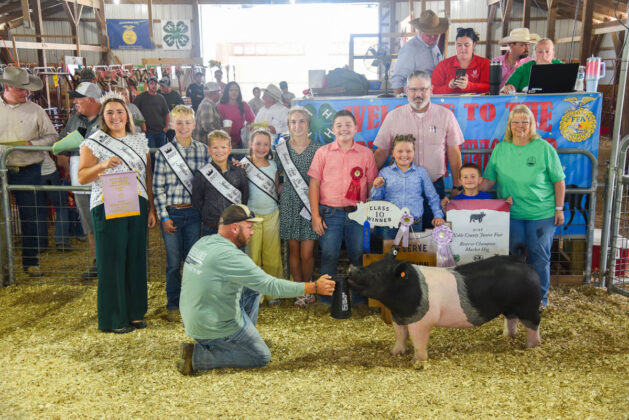 GRAND CHAMPION: Lyndi Schafer | Bid: $3,500 | Weight: 140 lbs | Buyer: Southeastern Glass; RESERVE CHAMPION: Lane Robinson | Bid: $3,000 | Weight: 138 lbs | Buyer: MPLX Gathering Processing
