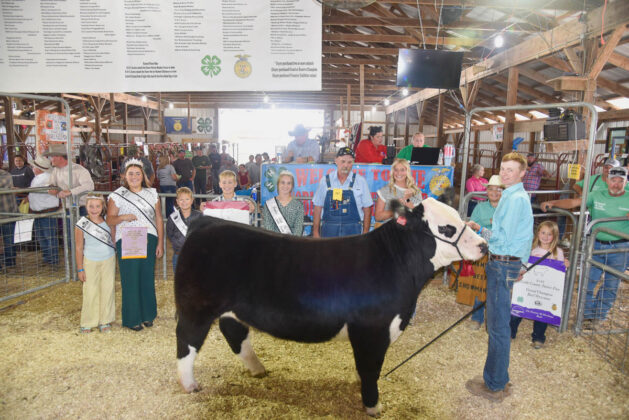 GRAND CHAMPION: Jayden Neptune | Bid: $6,300 | Weight: 648 lbs | Buyer: Bruner Land & Minerals; RESERVE CHAMPION: Tate Miller | Bid: $5,200 | Weight: 675 lbs | Buyer: Miley’s Windy Ridge Farm, Morgan Stanley Financial Advisor – Ann Sanford & Ford Bennett and Watson-Ruppel Performance