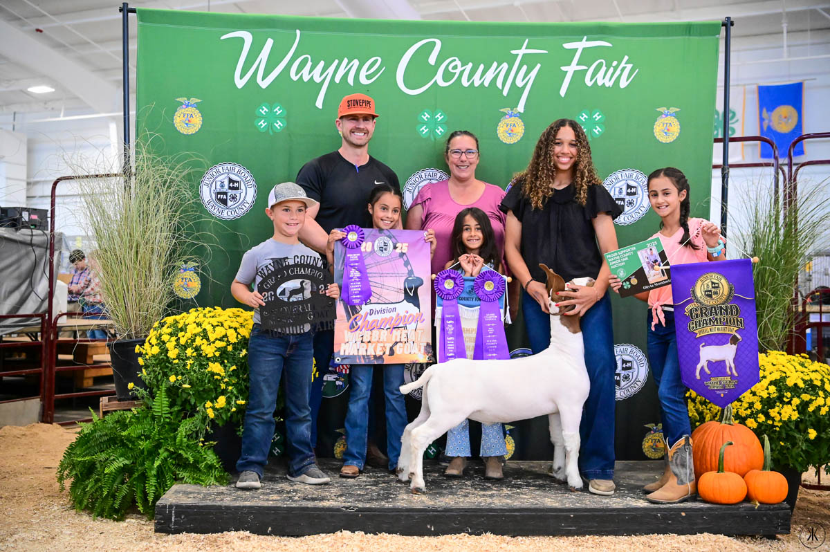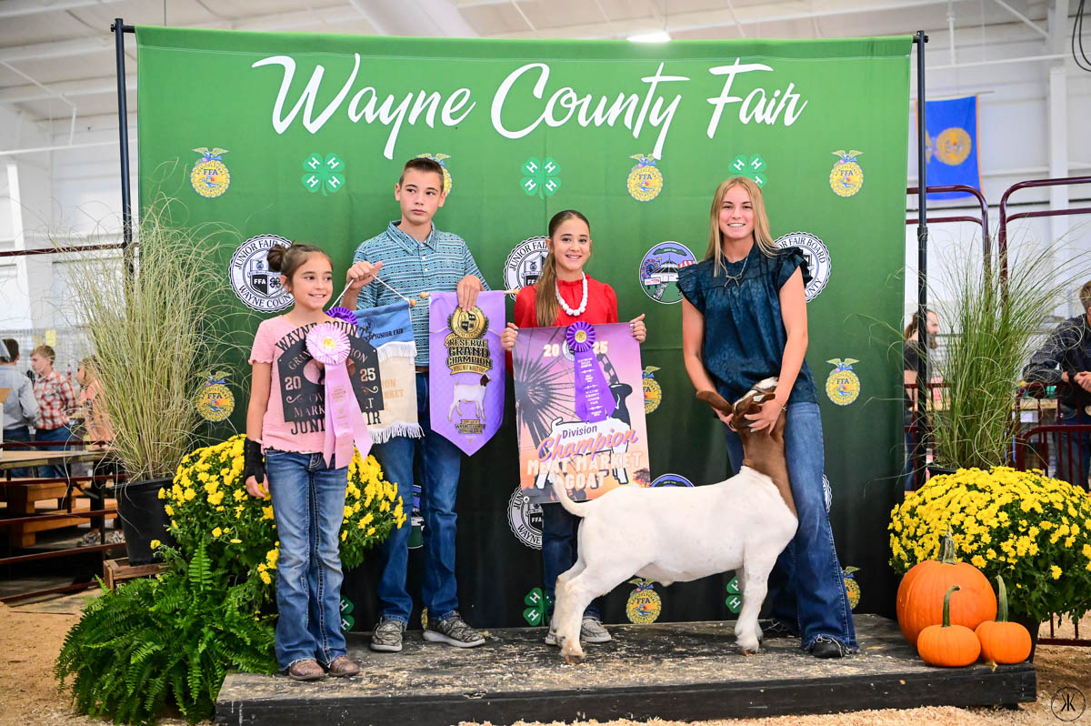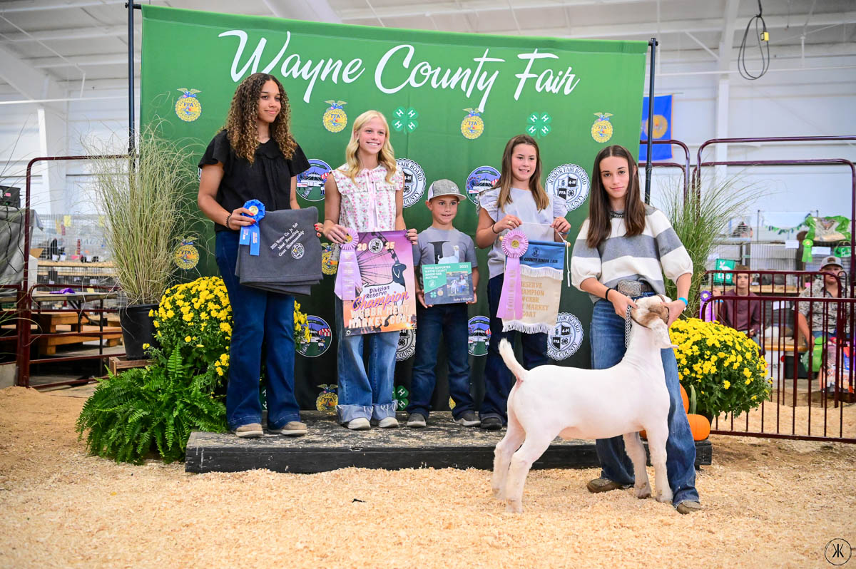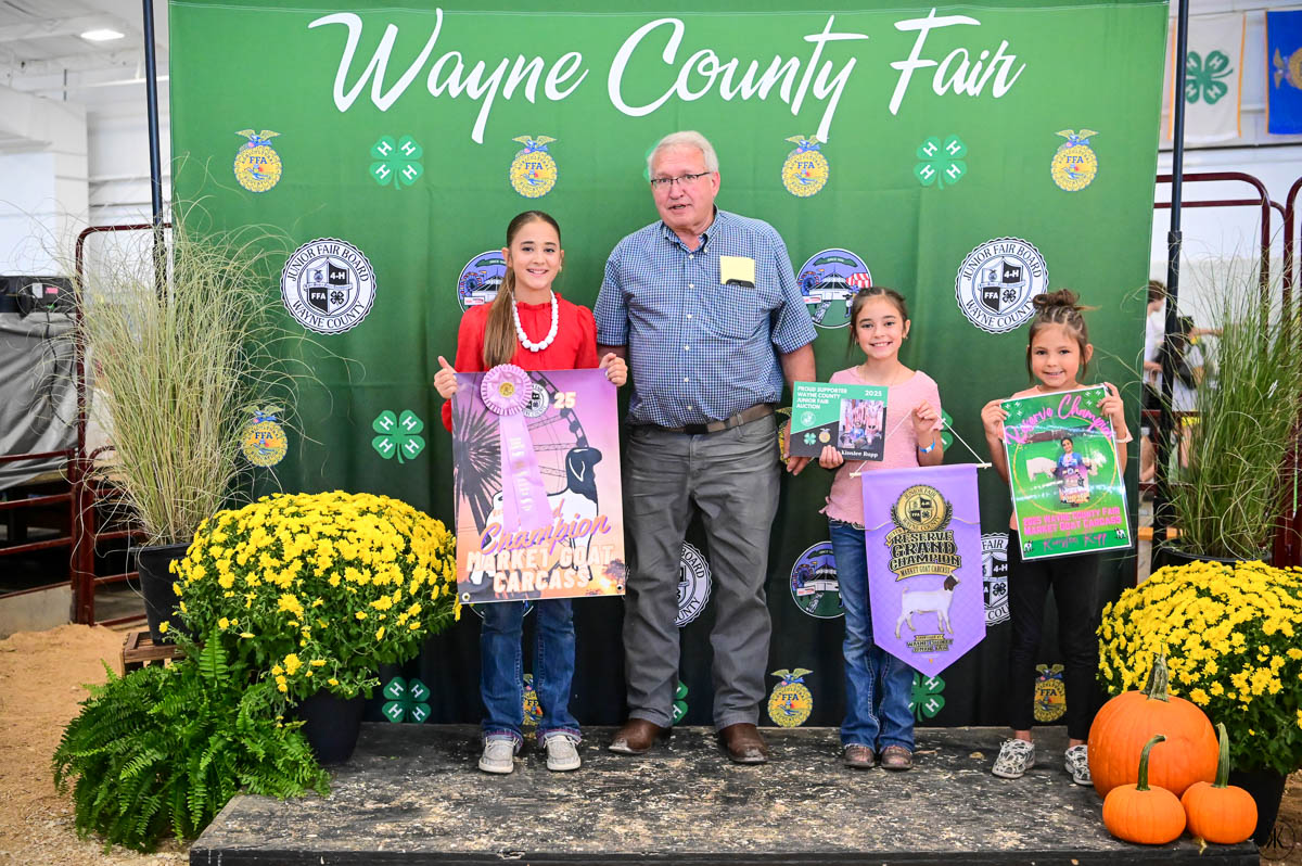 GRAND CHAMPION OVERALL MEAT MARKET GOAT: Olivia Stoudmire | Bid: $5,600 | Buyer: Twin Oaks Dermatology & Eye Surgery and Workhorse Trucking and Excavating; RESERVE OVERALL MEAT MARKET GOAT/WCBBR CHAMPION MEAT MARKET GOAT: Madicyn Rupp | Bid: $1,900 | Buyer: Walcrest Properties; RESERVE CHAMPION WCBBR MEAT MARKET GOAT: Aubri Lingle | Bid: $1,500 | Bid: Becker Farms Trucking