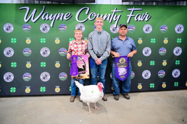 GRAND CHAMPION MEAT TURKEY: Brodric Flinner | Bid: $3,300 | Flinner & Sons Water Service LLC; RESERVE CHAMPION MEAT TURKEY: Samuel Ediger | Buyer: Gregg Orthodontics | Bid: $2,250