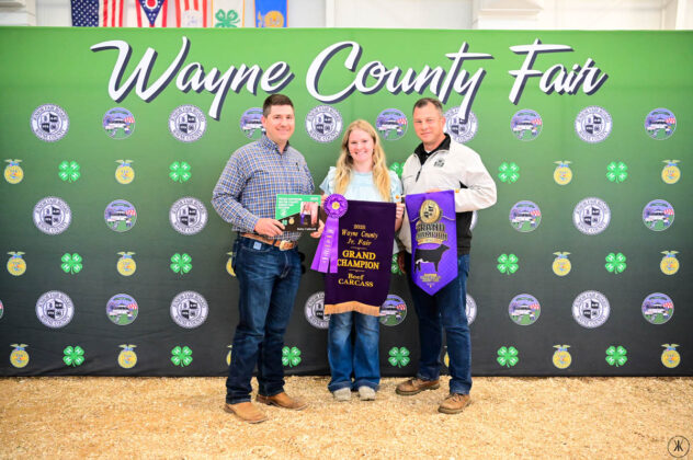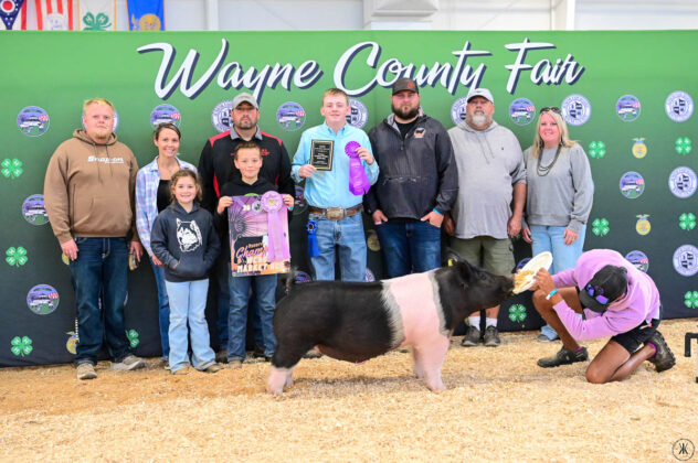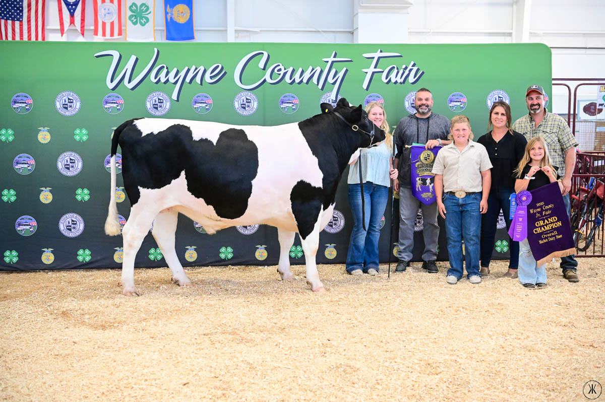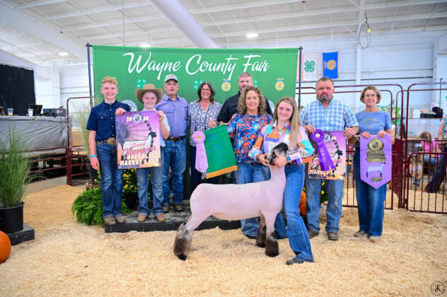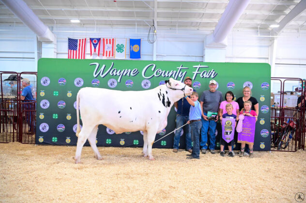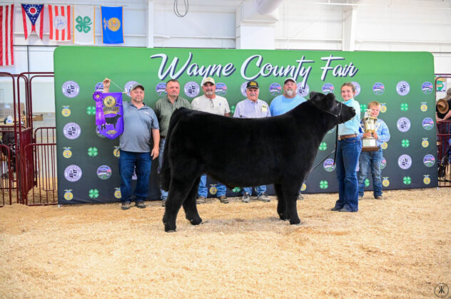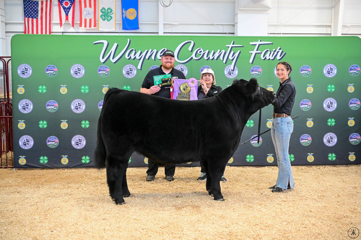 GRAND CHAMPION WAYNE COUNTY BORN BRED & RAISED STEER: Kaitlynn Baker | Bid: $9.50/lb | Buyer: Flinner Drilling, Morris Oil Co LLC, Steve & Peggy Andrews and Wharton Excavating; RESERVE CHAMPION WCBBR STEER: Claira Smith | Bid: $6.50/lb | Buyer: Kimble Recycling & Disposal