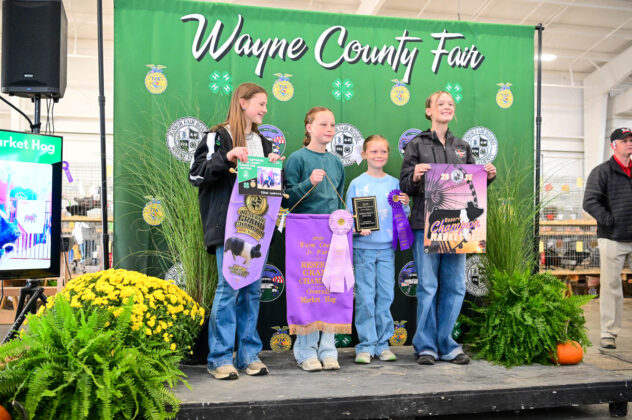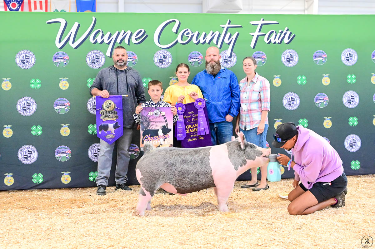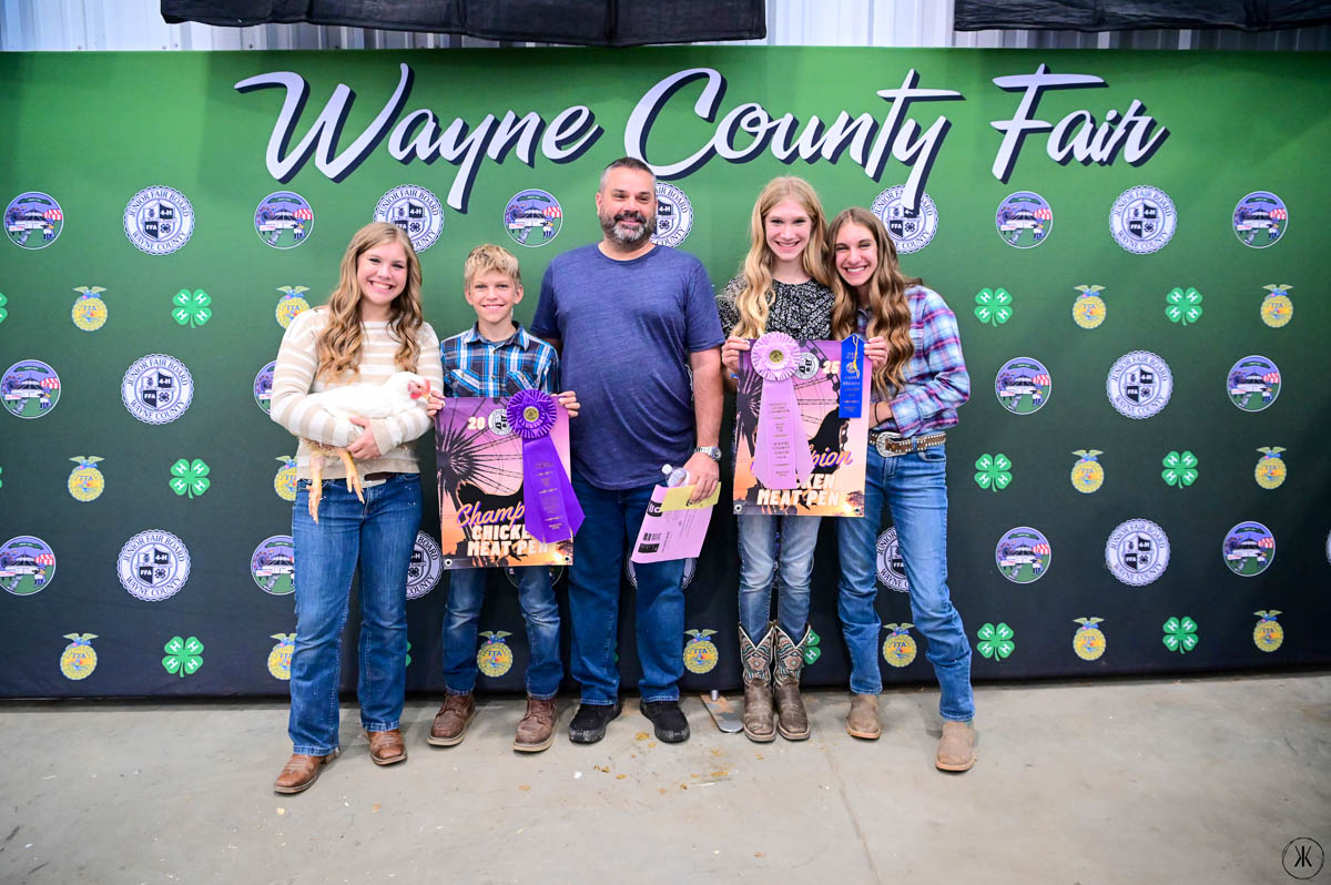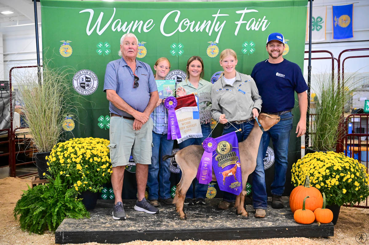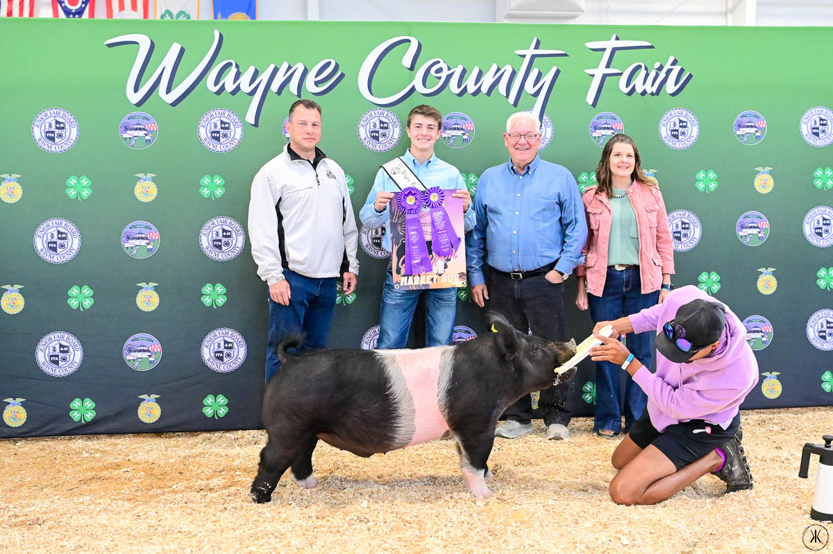 GRAND CHAMPION WAYNE COUNTY BORN BRED & RAISED STEER: Kaitlynn Baker | Bid: $9.50/lb | Buyer: Flinner Drilling, Morris Oil Co LLC, Steve & Peggy Andrews and Wharton Excavating; RESERVE CHAMPION WCBBR STEER: Claira Smith | Bid: $6.50/lb | Buyer: Kimble Recycling & Disposal
