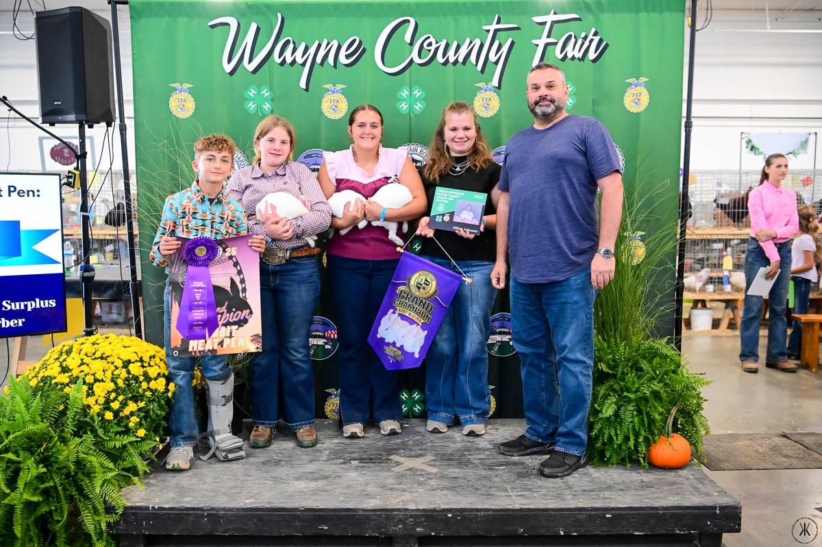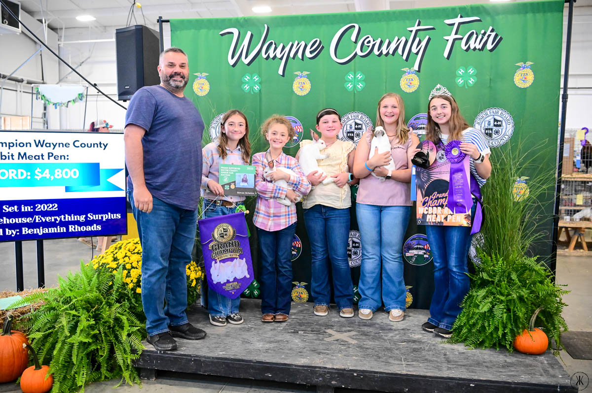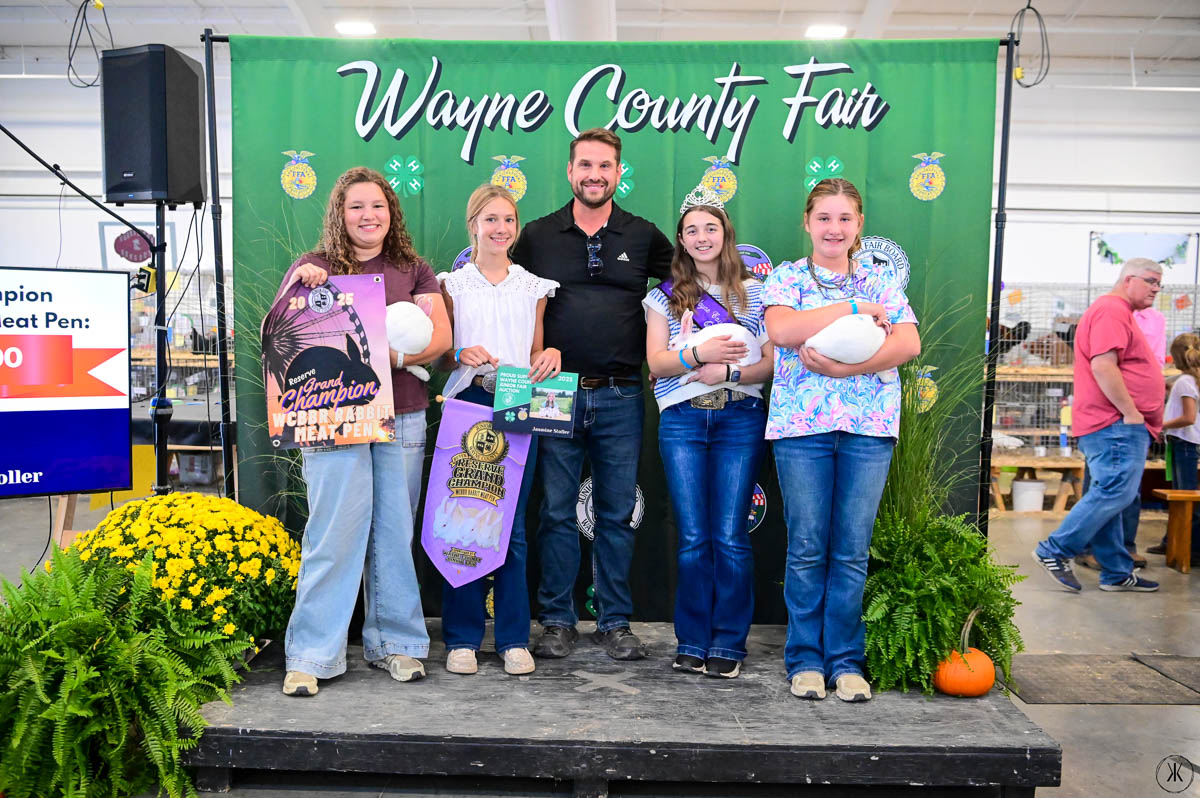 WCBBR GRAND CHAMPION MEAT RABBIT PEN: Rowan McIntire | Bid: $2,000 | Buyer: Clothing Warehouse Everything Surplus; WCBBR RESERVE CHAMPION MEAT RABBIT PEN: Jasmine Stoller | Bid: $3,000 | Buyer: Stoney Creek Landscaping