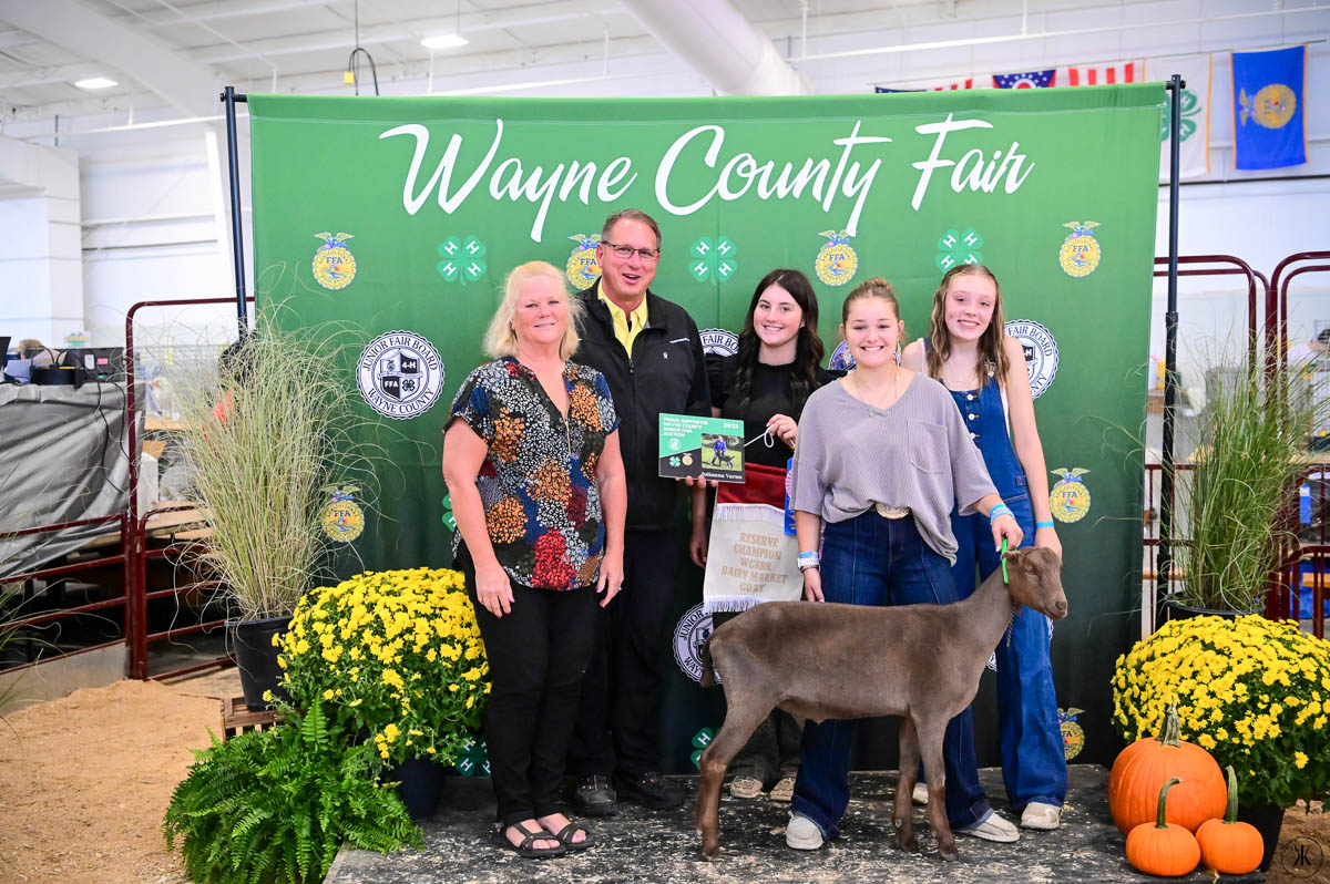 GRAND CHAMPION OVERALL DAIRY MARKET GOAT/WCBBR CHAMPION DAIRY GOAT: Greenly Burns | Bid: $800 | Buyer: Santmyer Energy, and Smetzer Tire; RESERVE CHAMPION OVERALL DAIRY MARKET GOAT: Ashley Stands | Bid: $700 | Buyer: SHM Welding & Fabrication; RESERVE CHAMPION WCBBR DAIRY MARKET GOAT: Julianna Varno | Bid: $900 | Buyer: Kevin & Marcia Trent