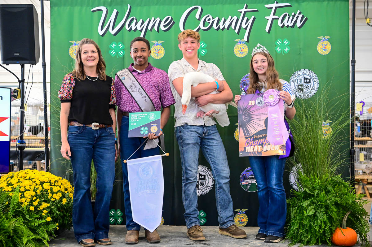 GRAND CHAMPION MEAT DUCK: Ty Rohr | Bid: $1,700 | Buyer: CRW Freight Mgmt Services Inc, Santmyer Energy, Smetzer Tire; RESERVE CHAMPION MEAT DUCK: Landon Wolf | Bid: $1,300 | Buyer: Santmyer Energy