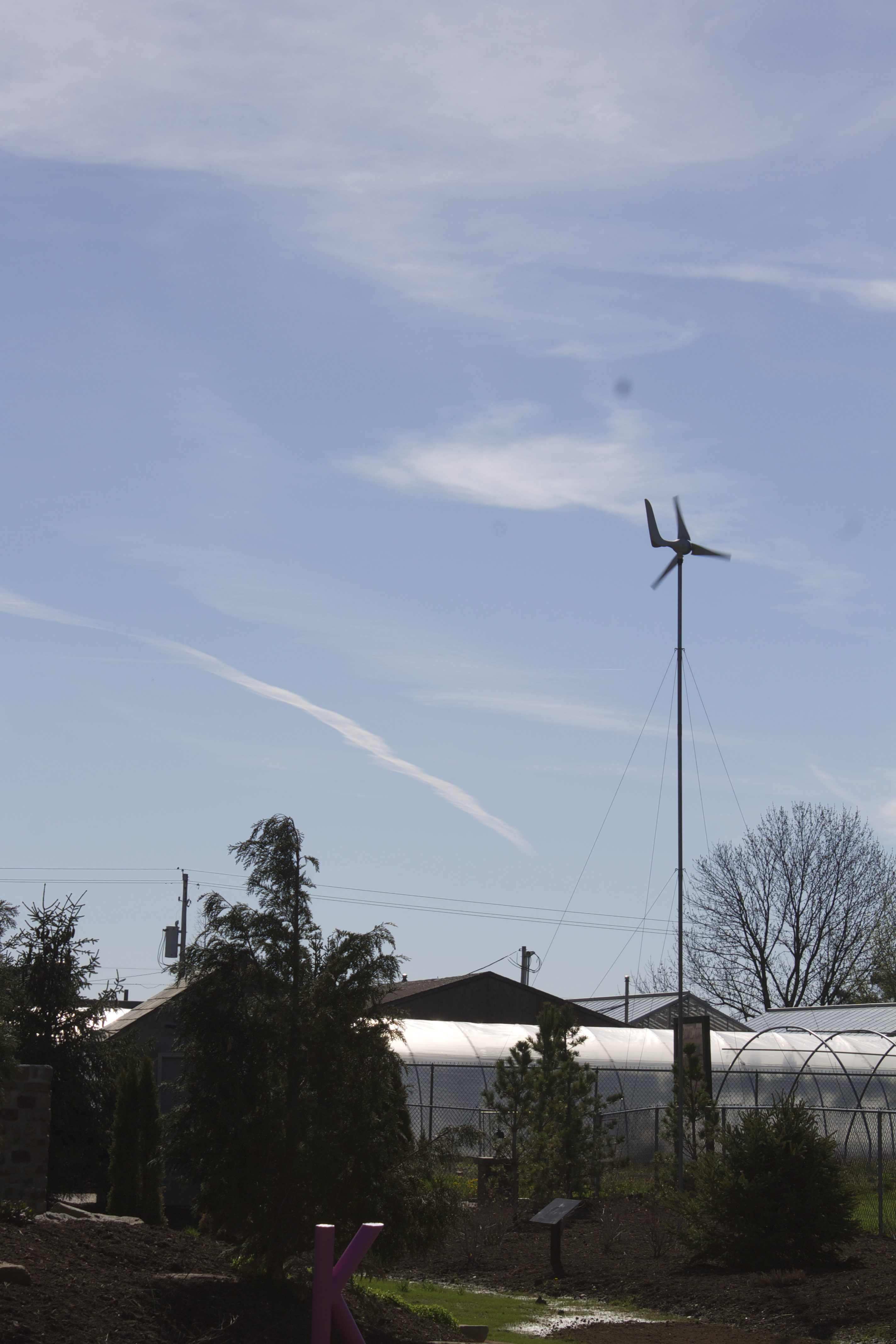 In addition, students built a wind turbine in the garden that produces enough electricity to power the landscape lights in the garden.