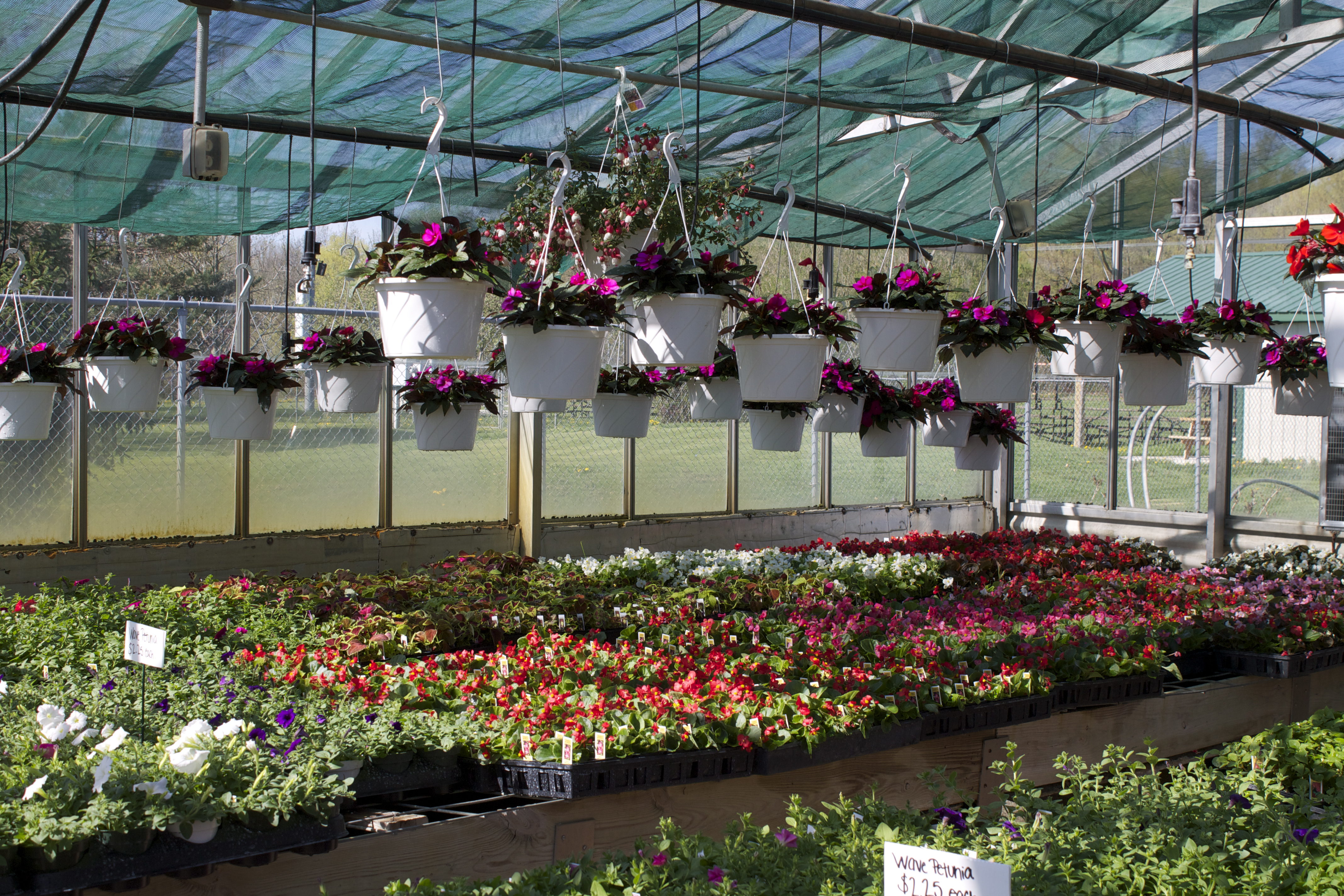 The students have produced geraniums, Gerbera daisies, marigolds and other types of flowers for use in hanging baskets, bedding or planted pots. The students also have vegetable plants for sale including peppers, tomatoes and herbs.