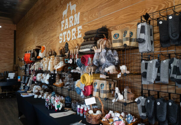 Alongside enjoying the animals, Pure Passions Farm has a farm store on the property where guests can buy alpaca fiber products made from the alpacas on the farm.