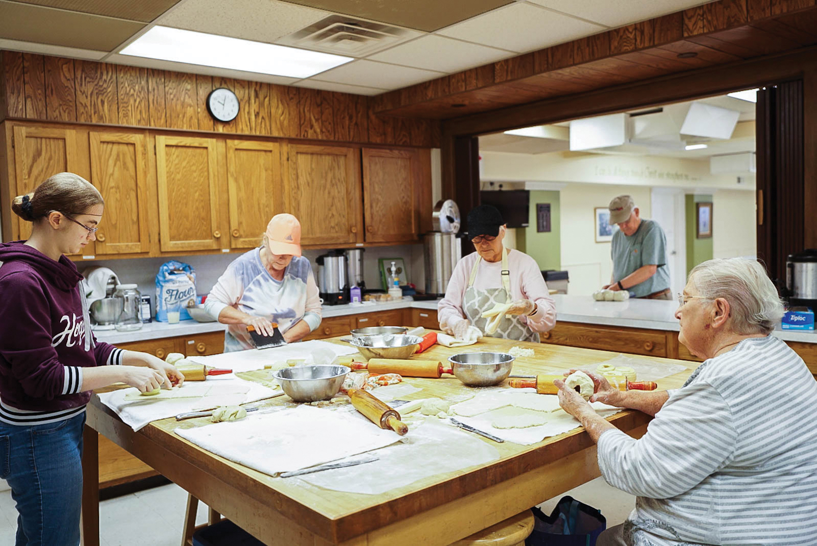 The volunteer crew comes out every Monday and Tuesday morning until Thanksgiving to make dumplings.