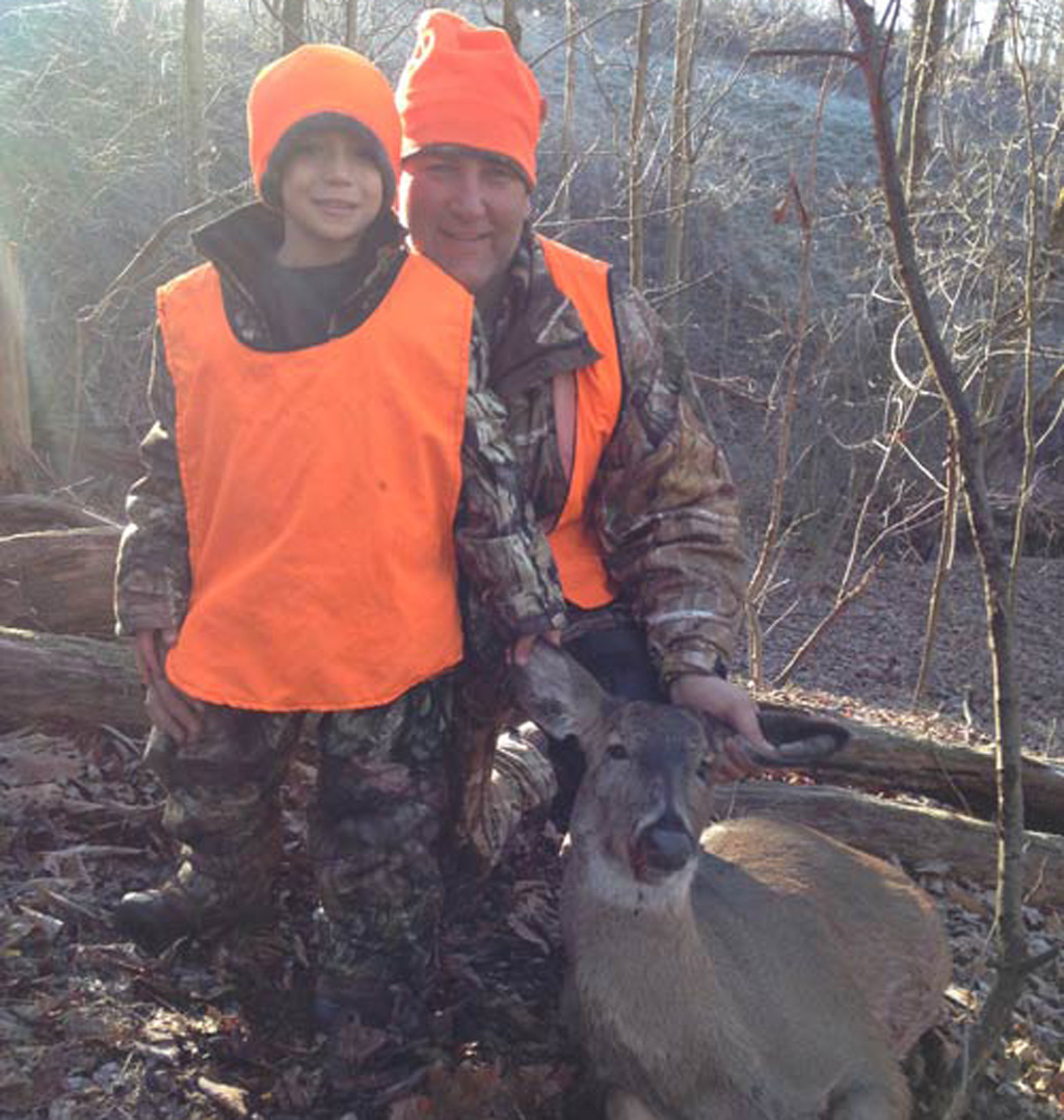 Anthony, 6, with his Dad after he shot his very first doe Dec. 5, 2015, on their family farm in Pennsylvania.