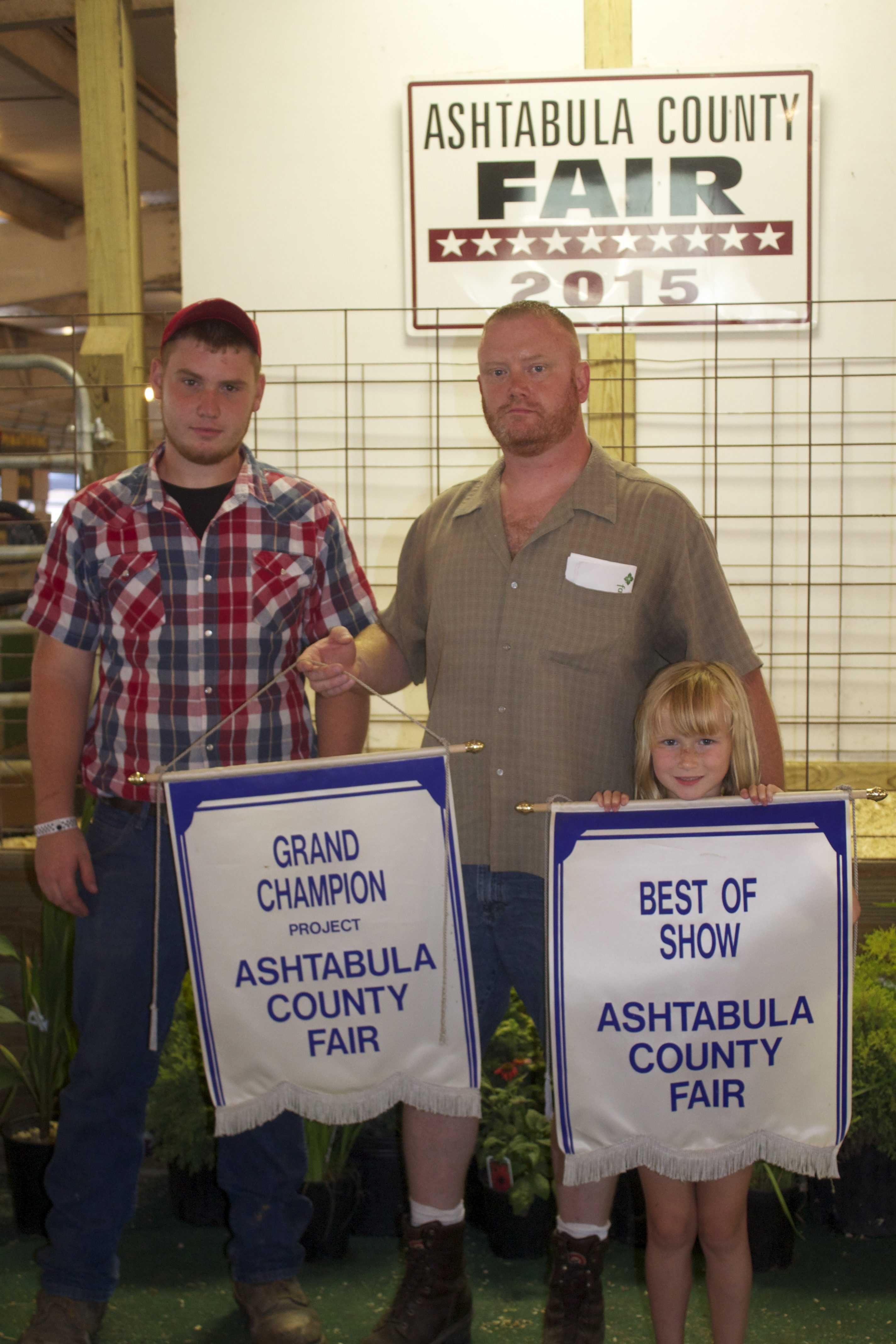 Logan Fetters brought home the title of grand champion exhibitor and best of show for the 322-pound dairy beef carcass. It sold for $4.10 a pound to Snyder’s Collision Center. Pictured is John and Jodi Wilson.