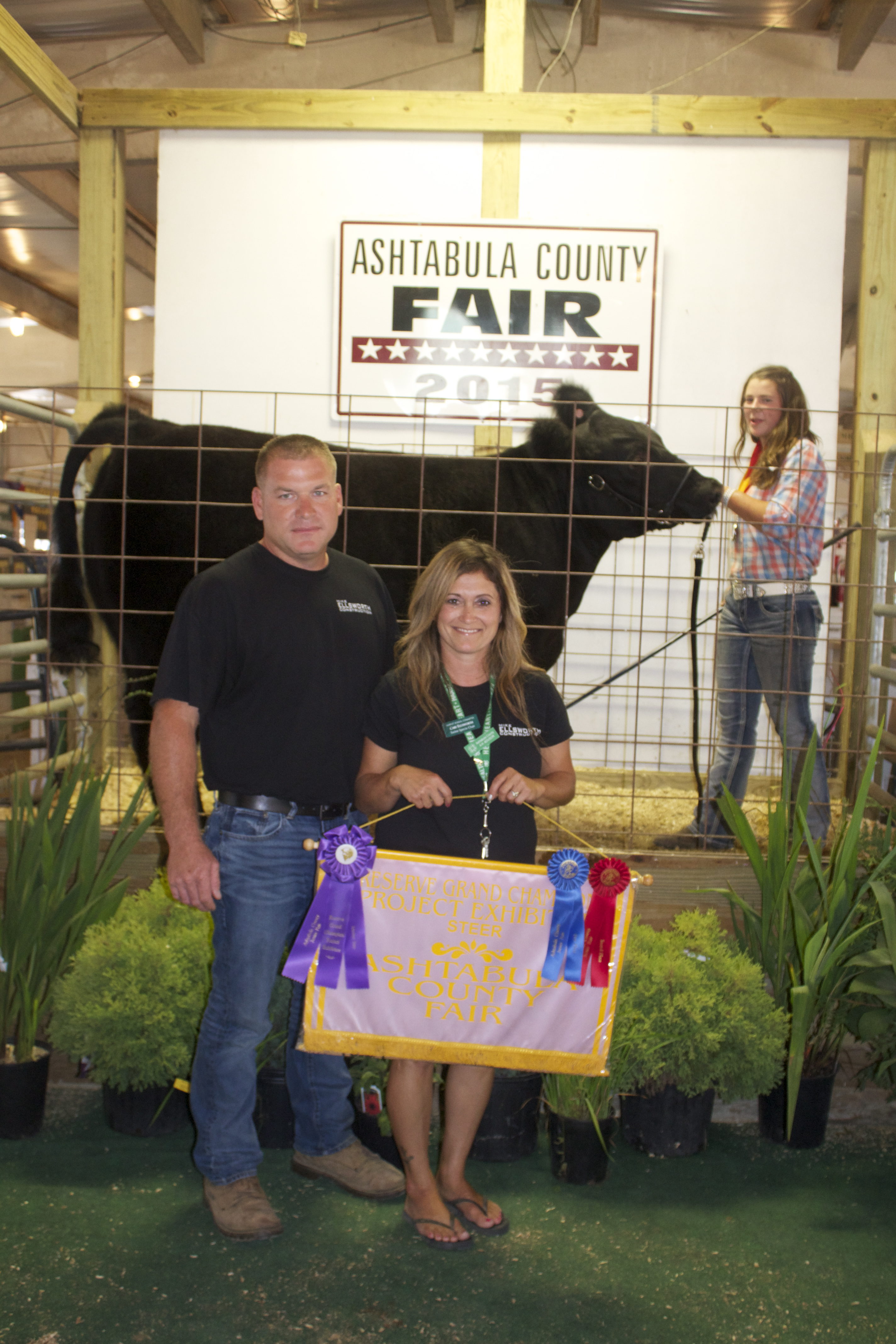 Katie Cole brought home the title of reserve champion exhibitor with her 1,250-pound market steer. She garnered $4.20 a pound after she sold it to Mike Ellsworth Construction. Pictured is Mike and Cari Ellsworth. (Kristy Foster Seachrist photos)