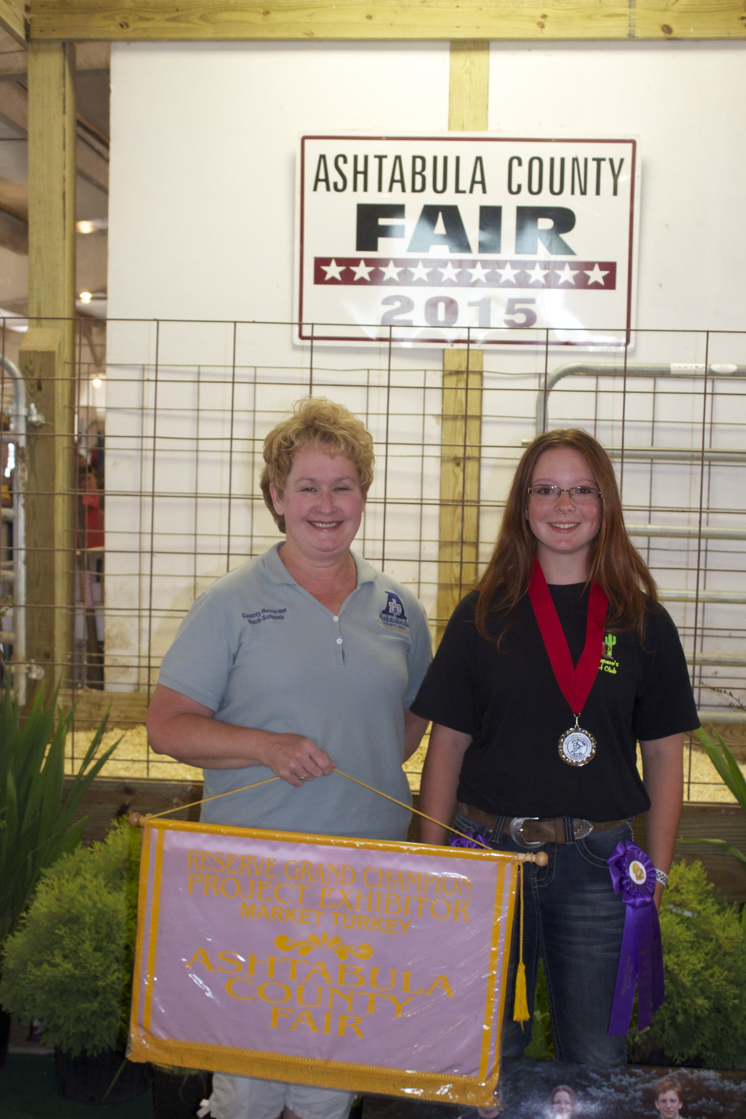 Christi Crites earned the title of reserve champion turkey exhibitor. The turkey weighed 36 pounds and was sold to Ashtabula County Recorder Barbara Schaab for $11 a pound.