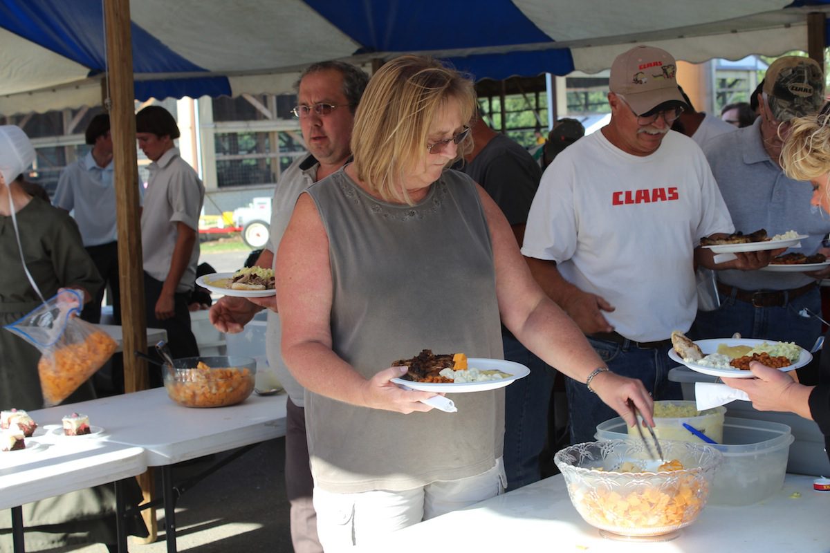 Twilight foodThe tour included a buffet-style meal, prepared by the Hostetler family and various volunteers. Before and after the meal, visitors were encouraged to take self-guided tours of the new buildings, and to review the products and new farm equipment on display.