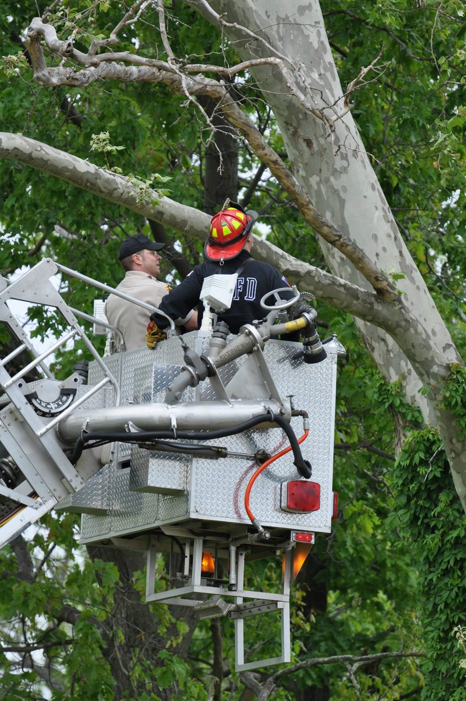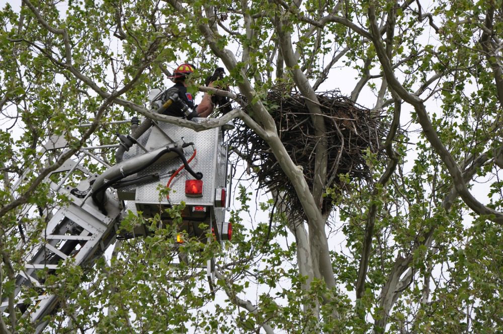 Lawrence County Wildlife Conservation Officer Byron Gibbs made contact with the Ellwood City fire department to assist. The fire department evaluated the scene and determined that they could use a fire truck with a 100-foot boom to facilitate the release.