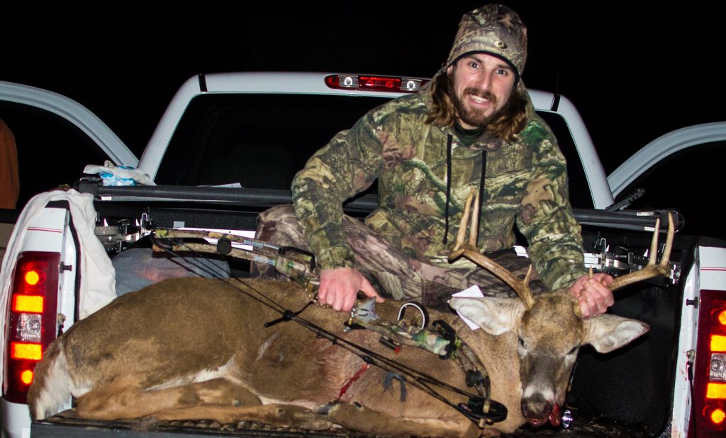 Benjamin Pecchia, of Canfield, Ohio, shot this buck in Greenford, Ohio. According to Pecchia, the buck was chasing does around a cornfield when he shot him with a compound bow from ten yards away.